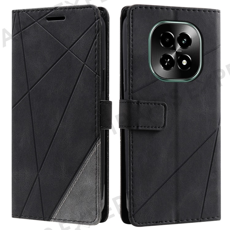 Leather Case for Realme C63 5G / V60 5G / V60s 5G Splicing Wallet Phone Cover - Black