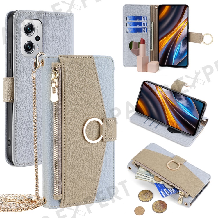 Leather Case for Xiaomi Redmi Note 11T Pro 5G / Note 11T Pro+ 5G / K50i 5G / Note 12T Pro 5G / Poco X4 GT 5G Crossbody Phone Cover - Blue