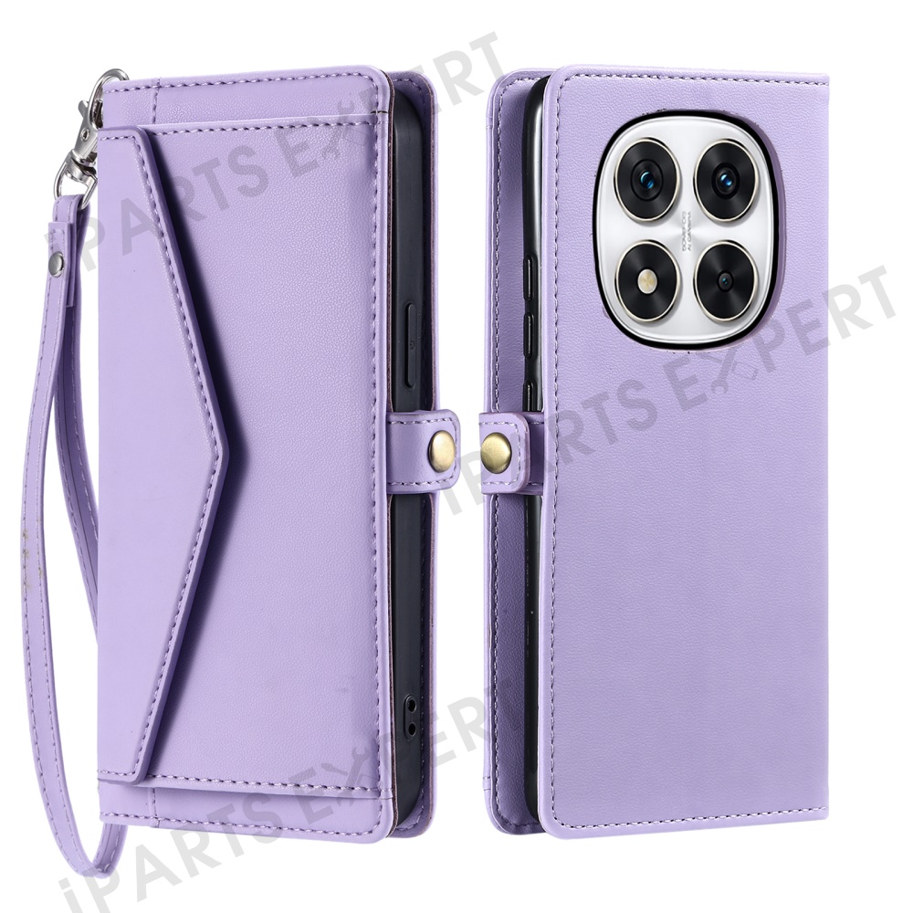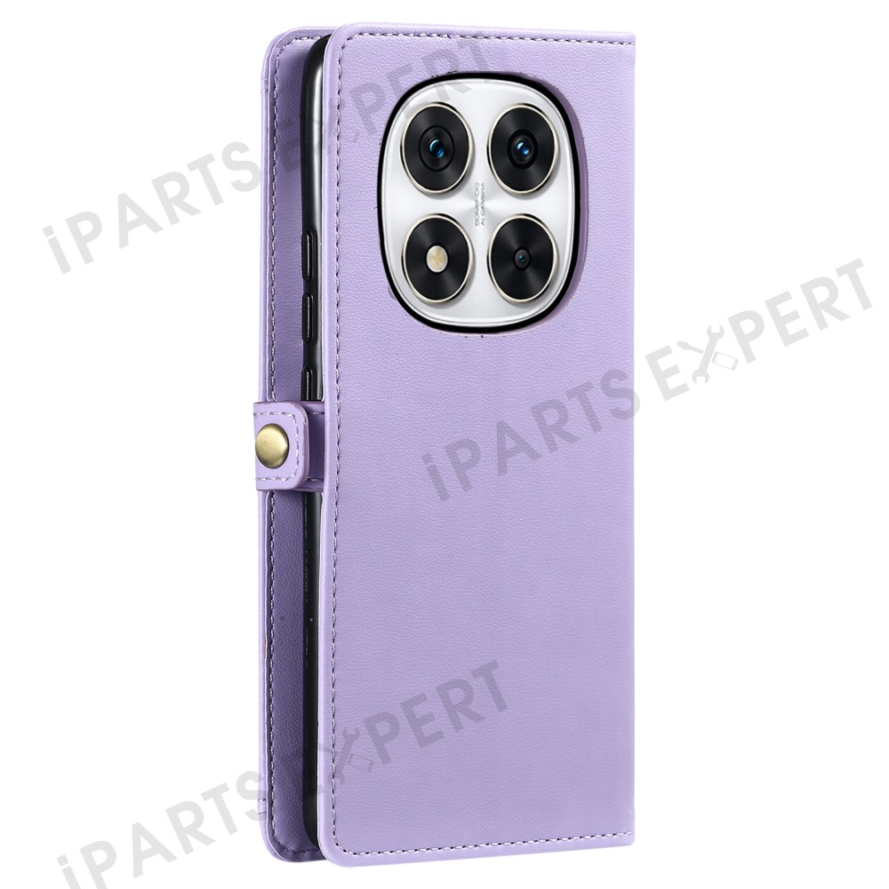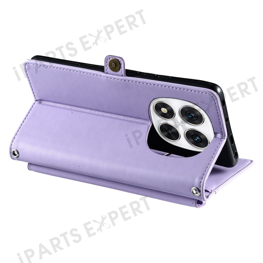 Leather Case for Xiaomi Redmi Note Note 14 Pro+ 5G / 14 Pro 5G / Poco X7 5G Wallet Stand Phone Cover with Straps - Purple