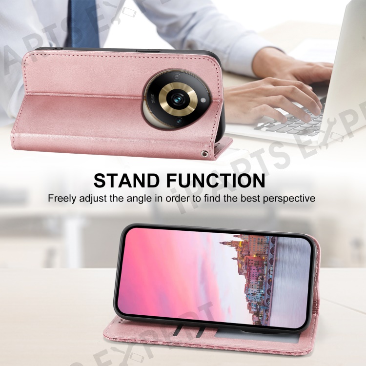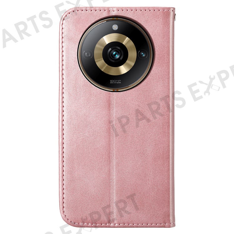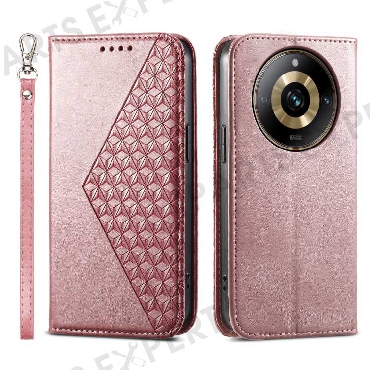 Leather Phone Case for Realme 11 Pro 5G Anti-fall Imprinted Rhombus Pattern Wallet Stand Cover - Rose Gold