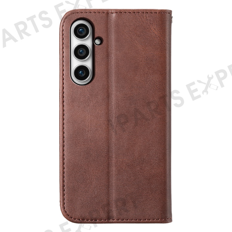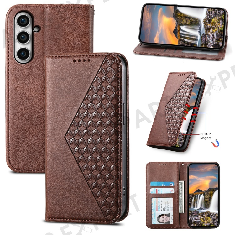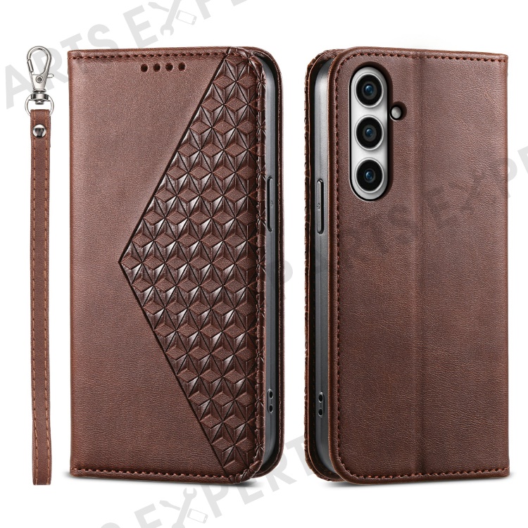 Leather Phone Case for Samsung Galaxy S23 FE Imprinted Rhombus Pattern Wallet Stand Cover - Brown