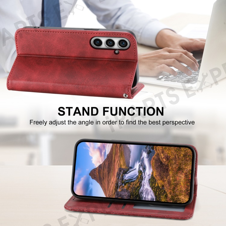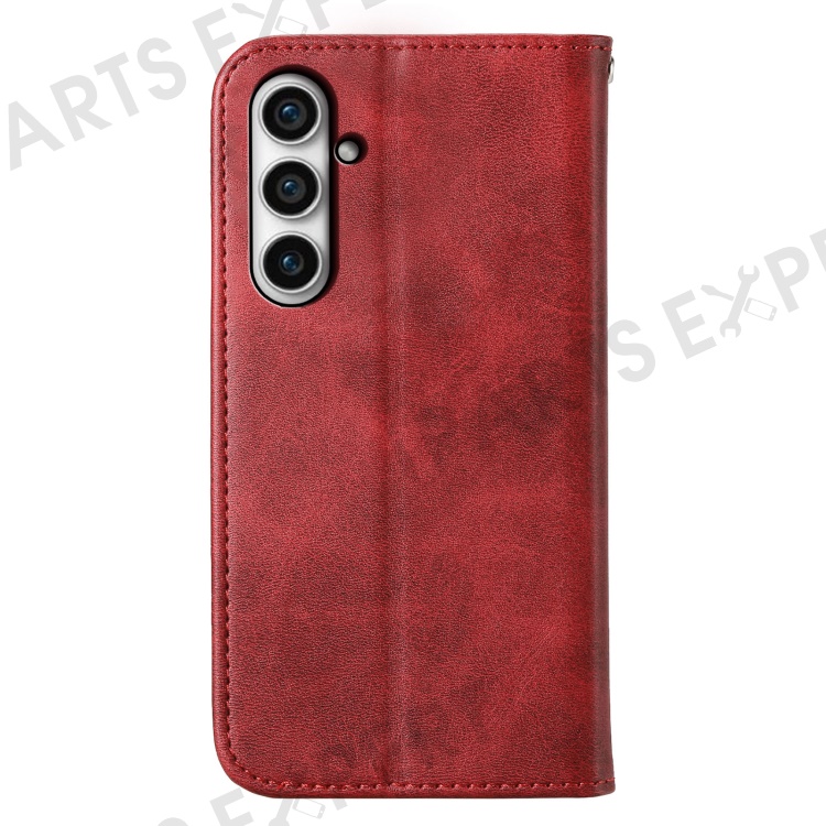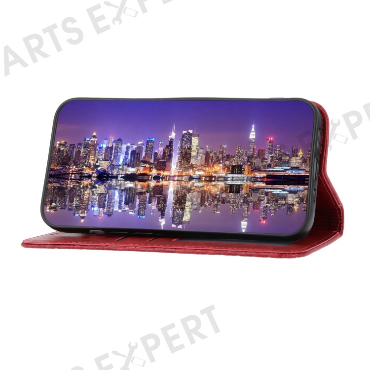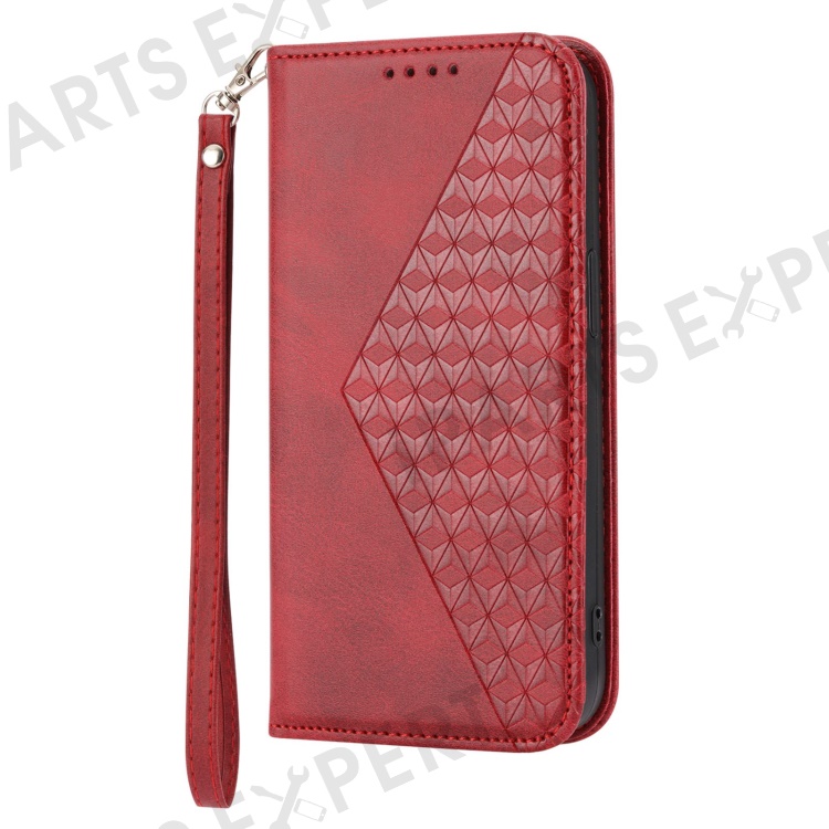 Leather Phone Case for Samsung Galaxy S23 FE Imprinted Rhombus Pattern Wallet Stand Cover - Red