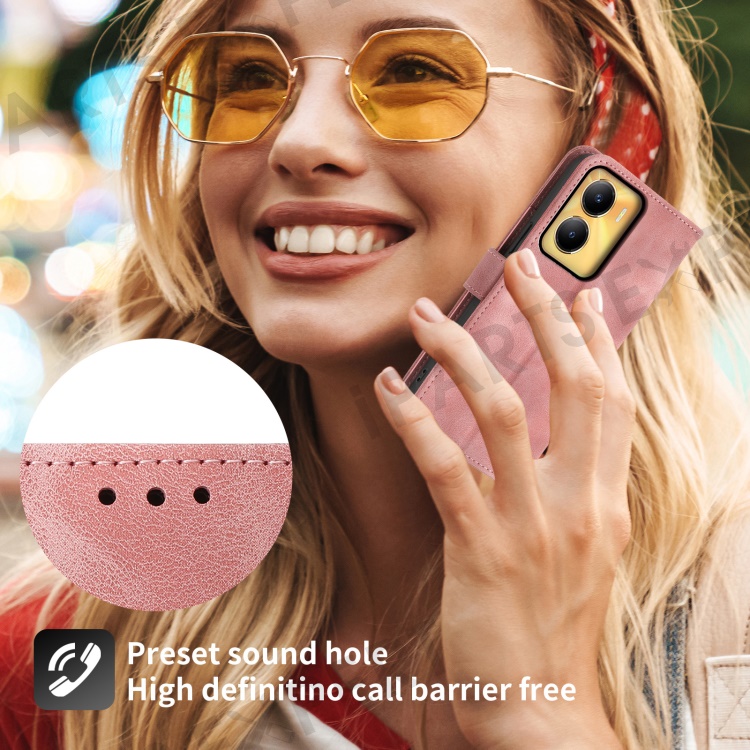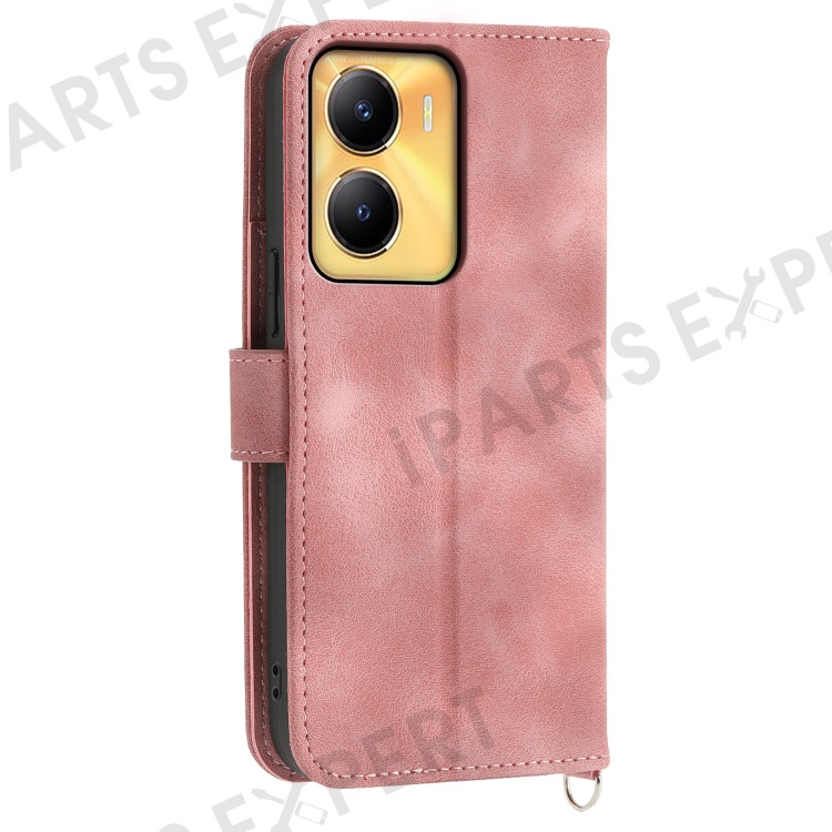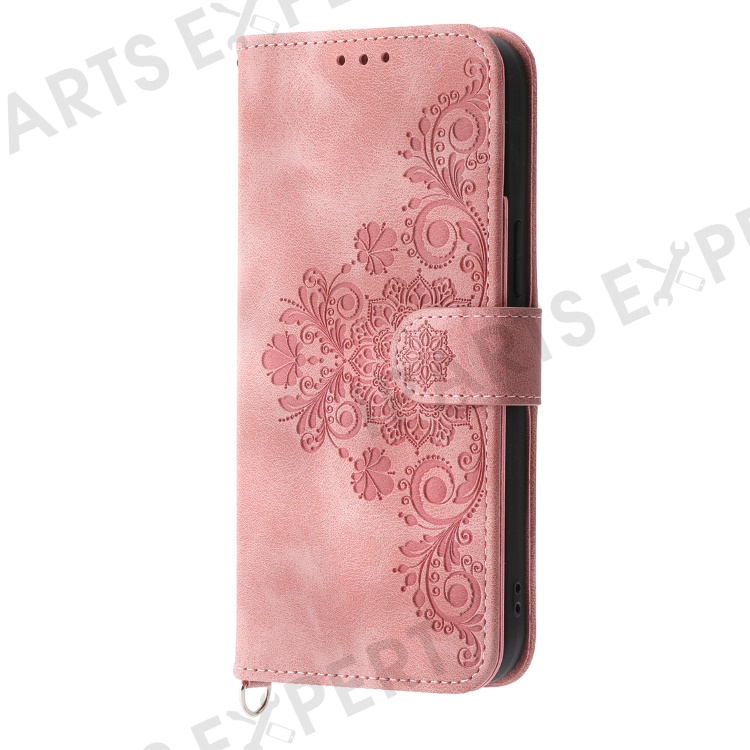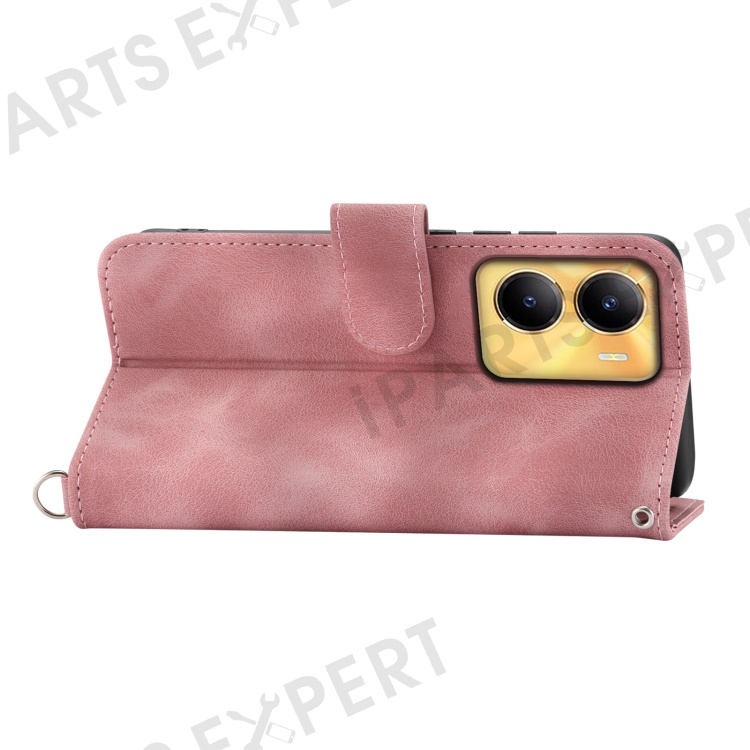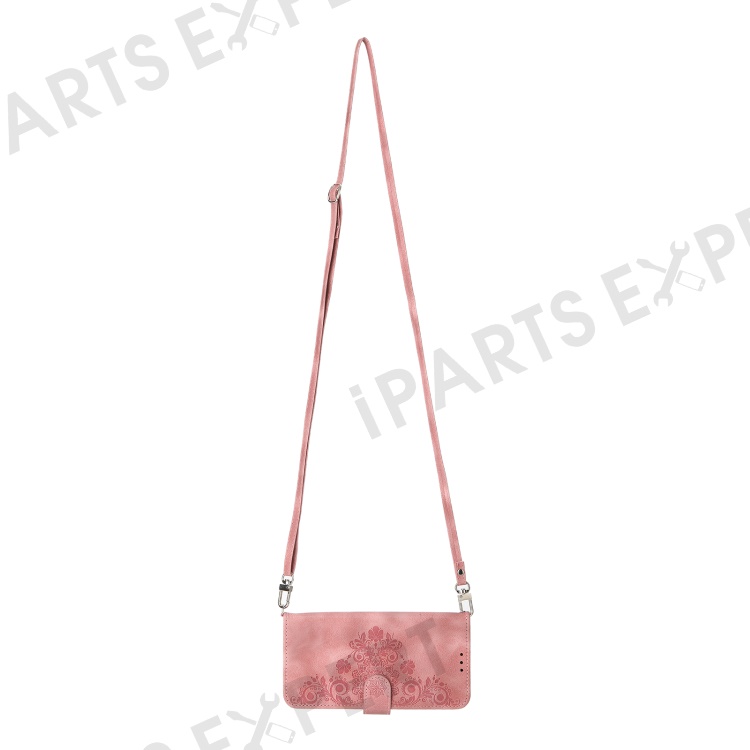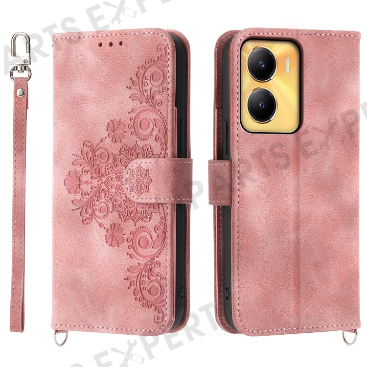Leather Wallet Phone Case for vivo Y56 5G , Imprinted Flower Stand Cover with Wrist Strap and Shoulder Strap - Pink