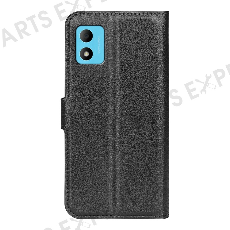 Litchi Texture PU Leather Case for TCL 305i, Stand Wallet Full Protection Magnetic Clasp Phone Cover - Black