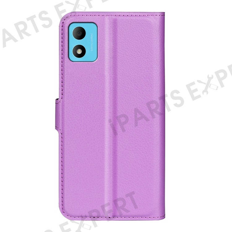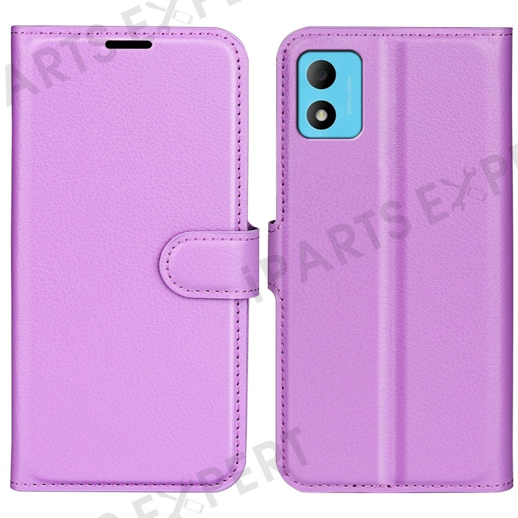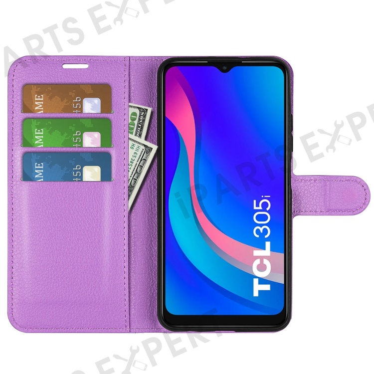 Litchi Texture PU Leather Case for TCL 305i, Stand Wallet Full Protection Magnetic Clasp Phone Cover - Purple