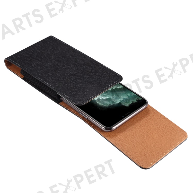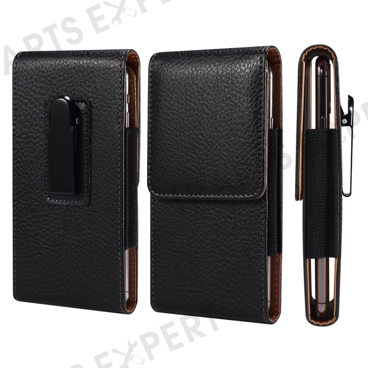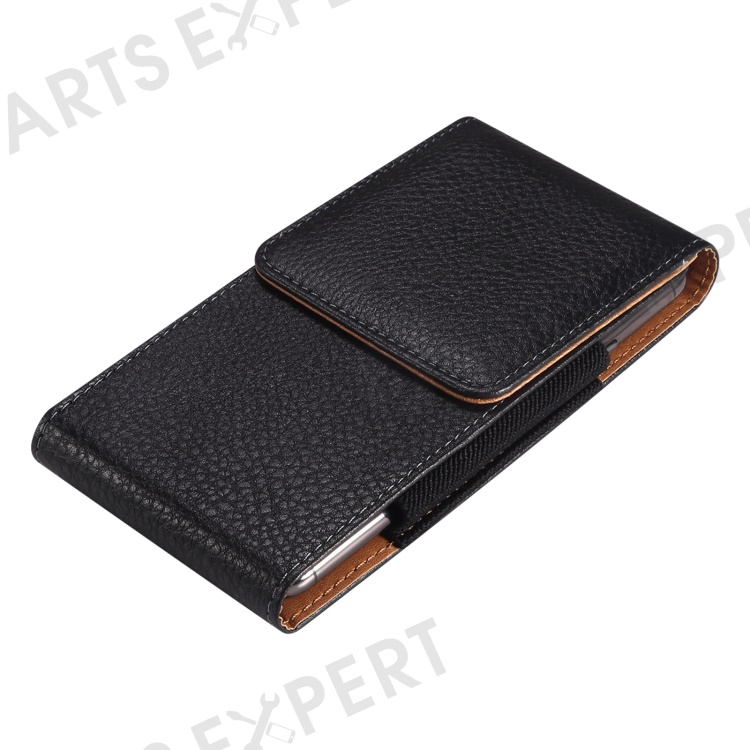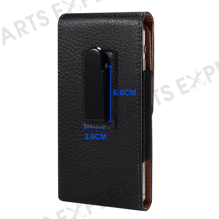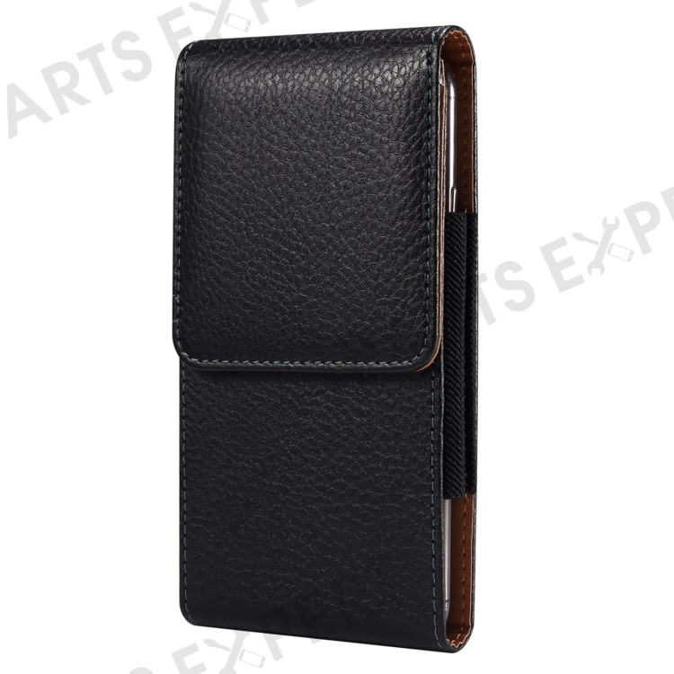 Litchi Texture PU Leather Phone Pouch for 6.2-6.5" Mobile Phones Vertical Belt Bag with Back Buckle