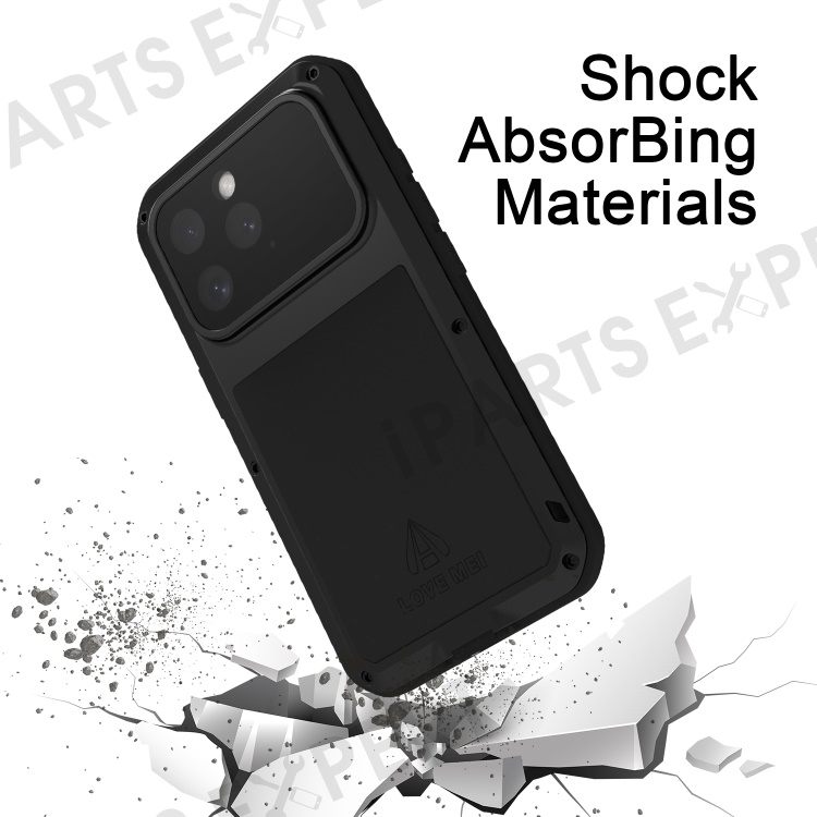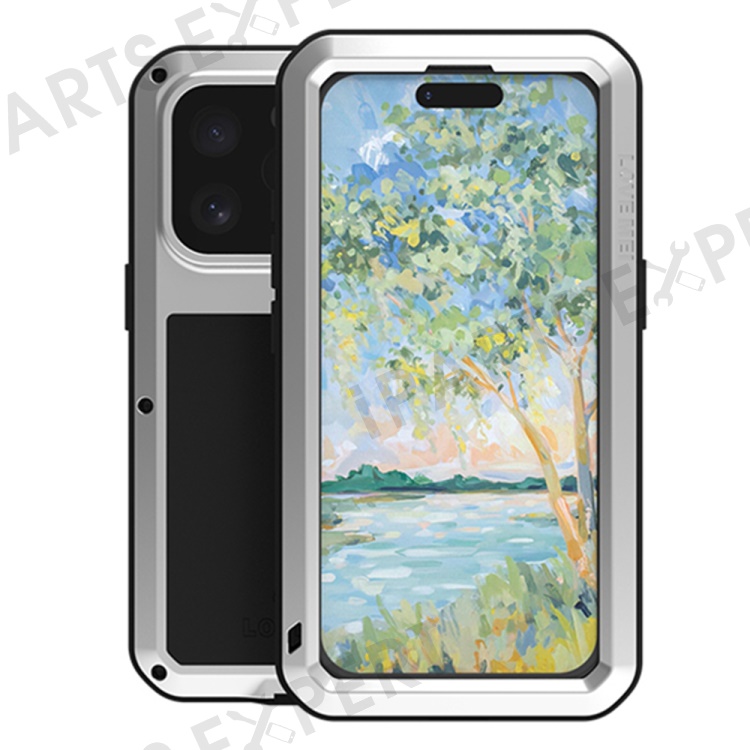 LOVE MEI For iPhone 16 Pro Case with Tempered Glass Film Metal+Silicone Phone Cover - Silver