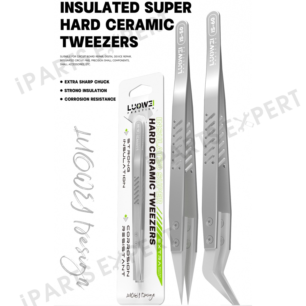 LUOWEI Hard Insulated Ceramic Tweezers for Circuit Board Repair - IS-60 Curved Tip