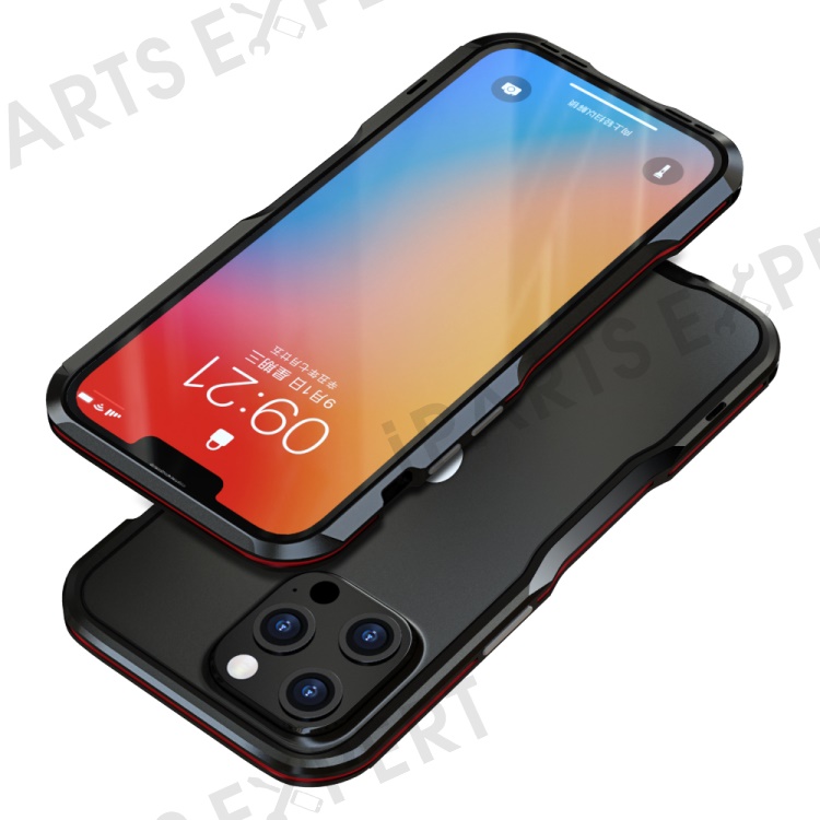 LUPHIE Shockproof Metal Frame Armor Bumper Case for iPhone 13 Pro Max 6.7 inch - Black/Red