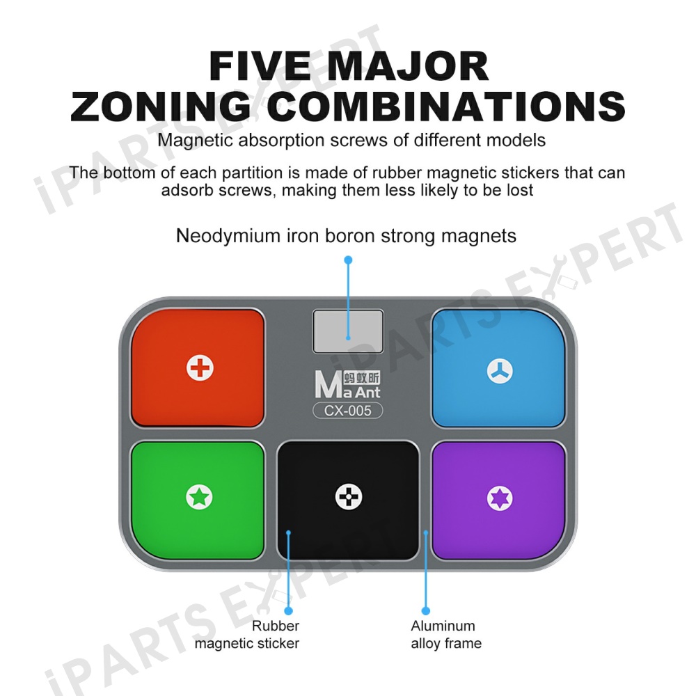 - 【5 Compartment Design】The CX-005 magnetic storage board features 5 distinct compartments for organized storage of different screw types and sizes.
