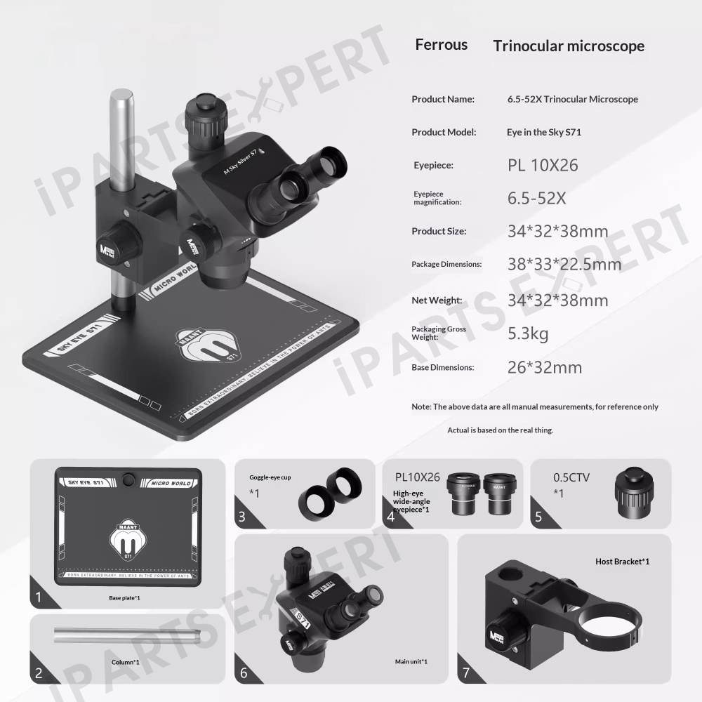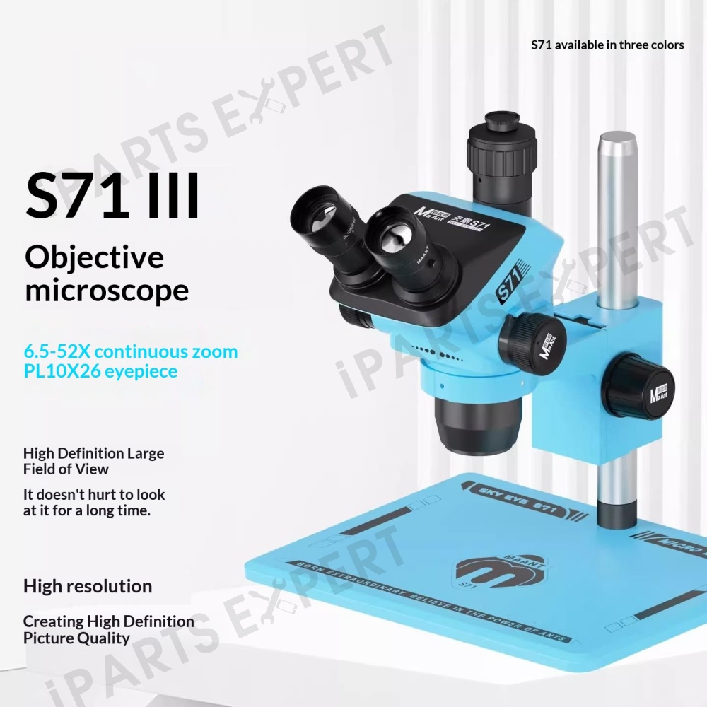 MAANT SkyEye S71 Trinocular Microscope 6.5-52X Continuous Zoom High Definition For PCB Repair / Phone Maintenance - Black