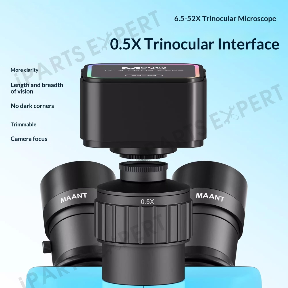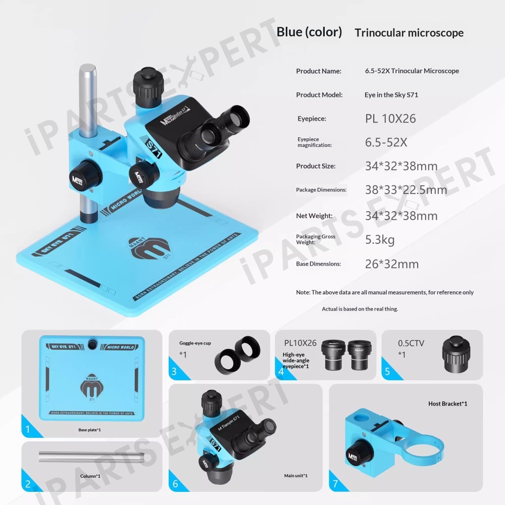 MAANT SkyEye S71 Trinocular Microscope 6.5-52X Continuous Zoom High Definition For PCB Repair / Phone Maintenance - Blue