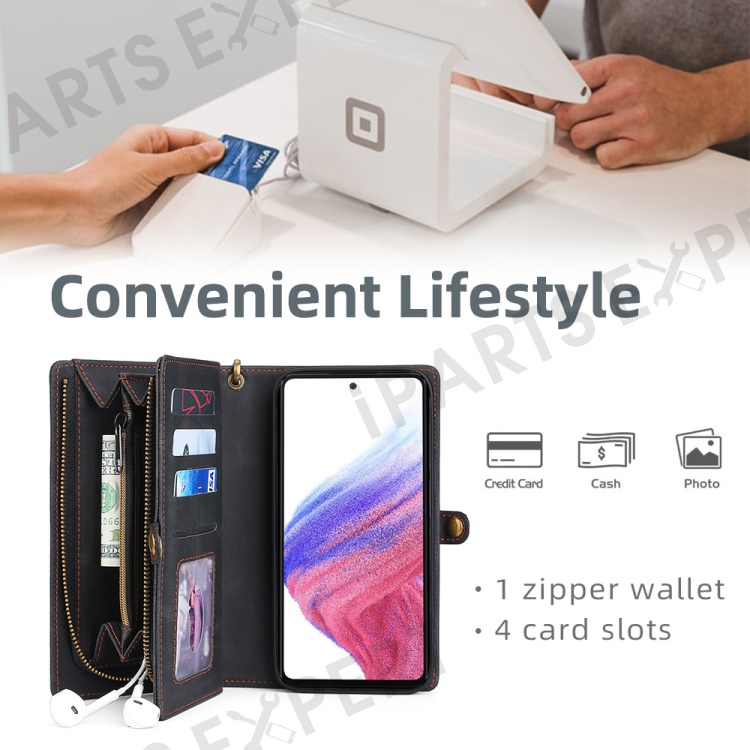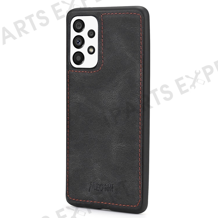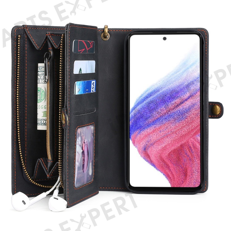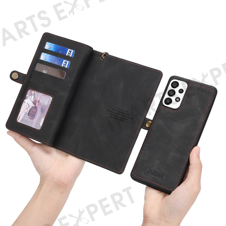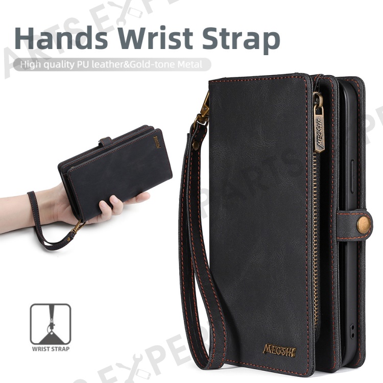 MEGSHI 017 Series For Samsung Galaxy A33 5G Detachable Magnet Cover Zipper Wallet PU Leather Flip Case with Wrist Strap - Black
