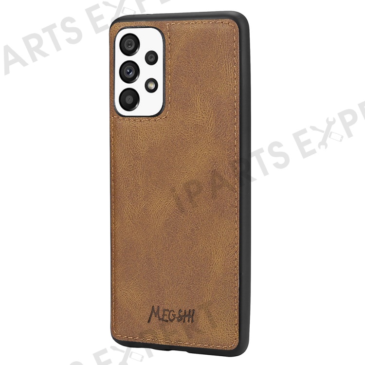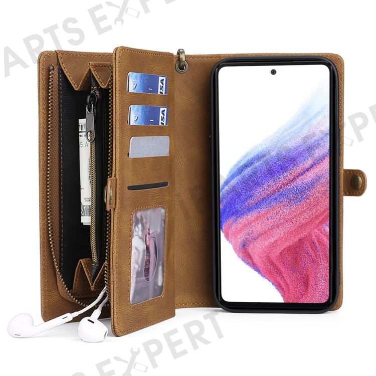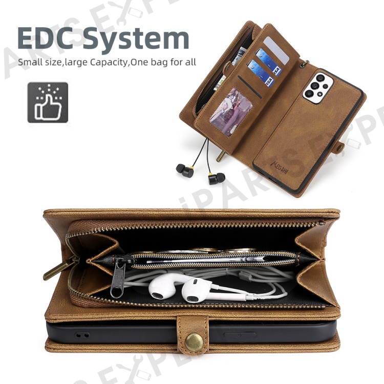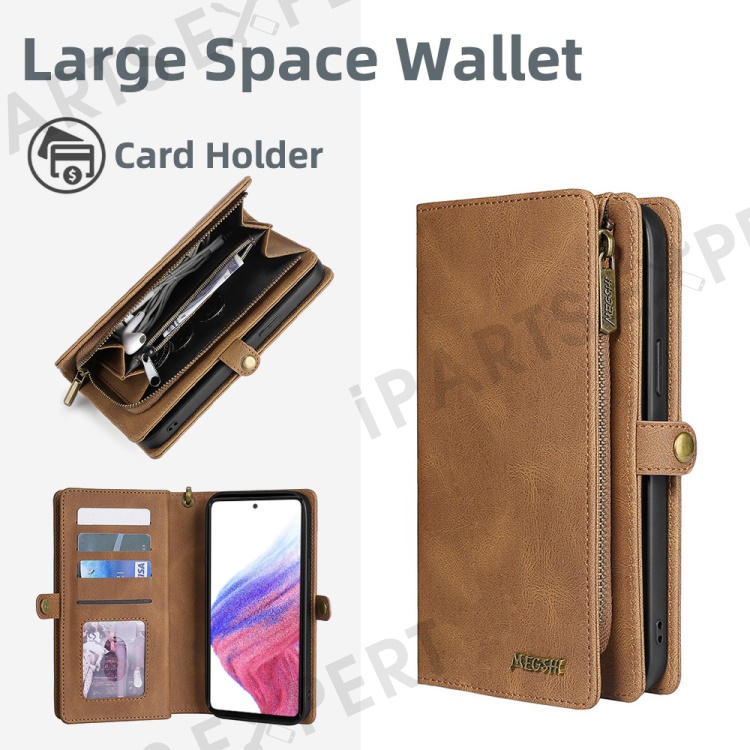 MEGSHI 017 Series For Samsung Galaxy A33 5G Detachable Magnet Cover Zipper Wallet PU Leather Flip Case with Wrist Strap - Brown