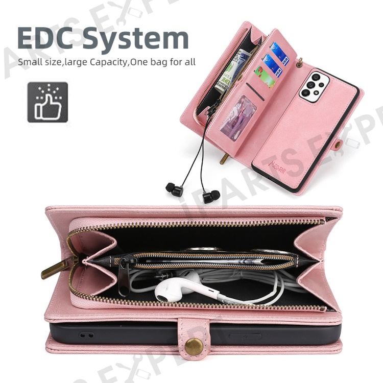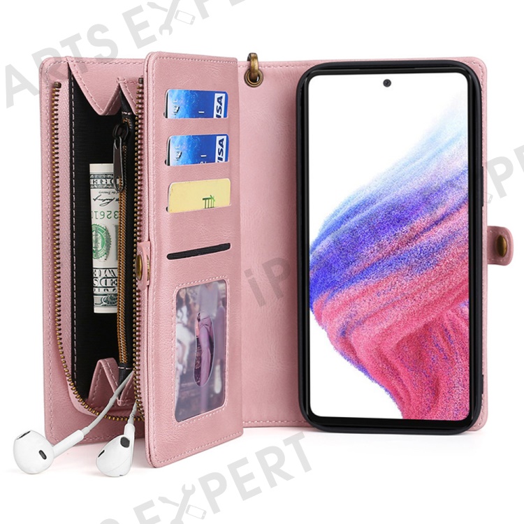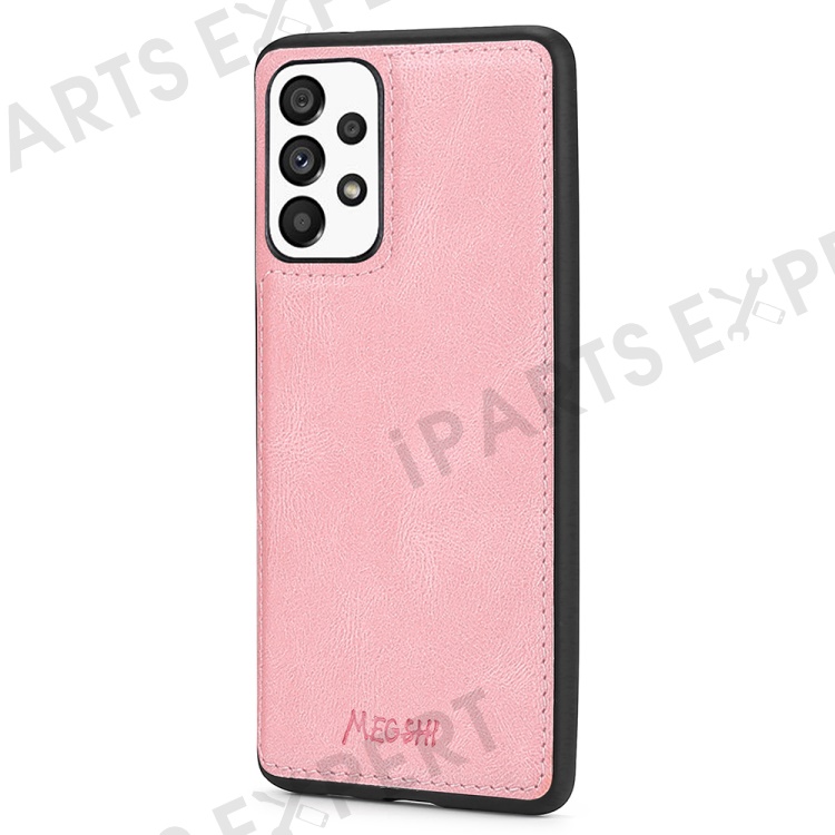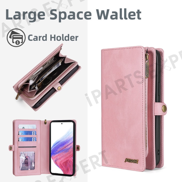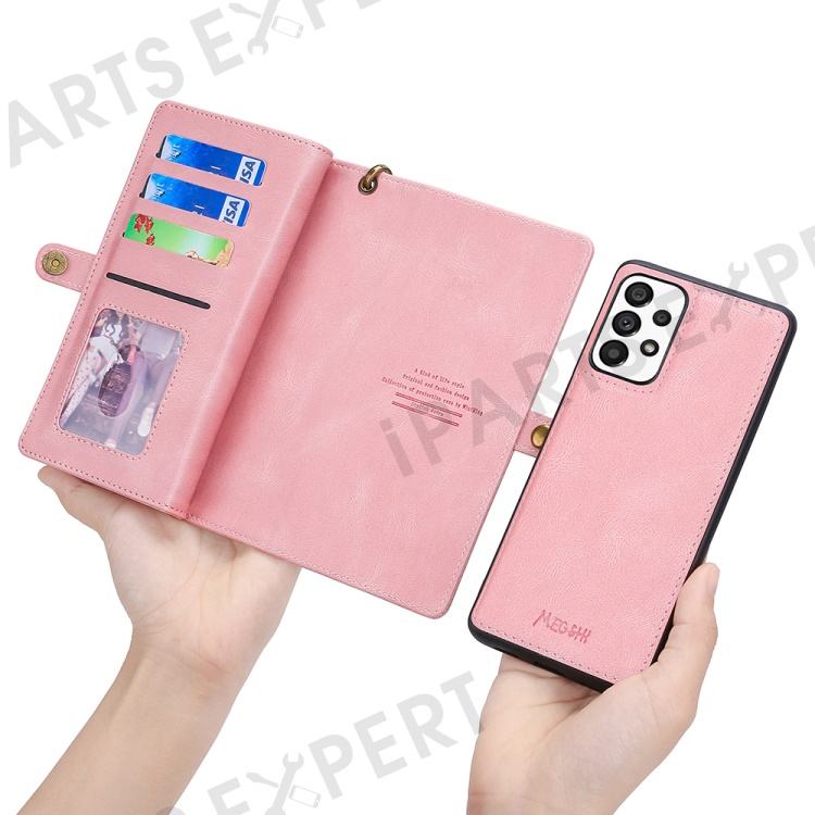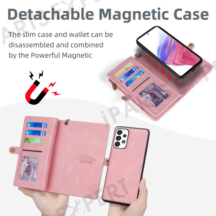 MEGSHI 017 Series For Samsung Galaxy A33 5G Detachable Magnet Cover Zipper Wallet PU Leather Flip Case with Wrist Strap - Rose Gold
