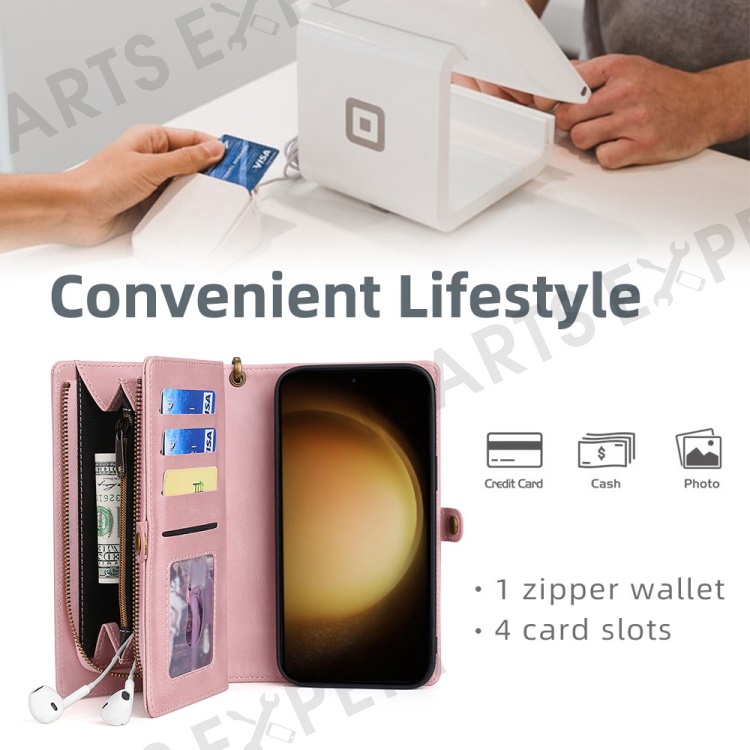 Well-selected textured PU leather from outside to inside is smooth like skin and dirty resistant. Connected by strong magnetism, the inner case that crafts from PC and TPU material can be detached to use alone. Practical design, combines your wallet and phone case into one handy unit. Zipper closure cash compartment, carry some money or your earphone with phone securely.