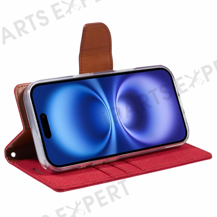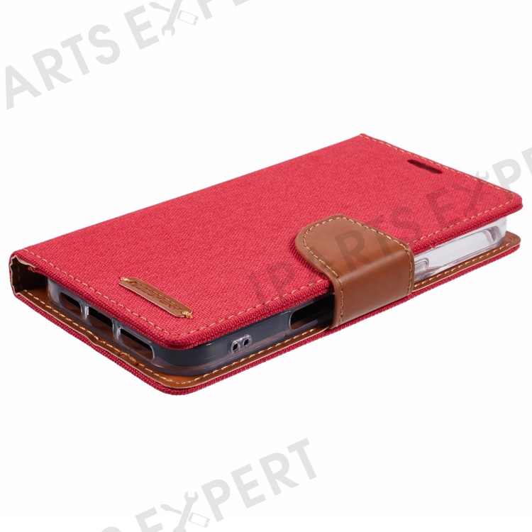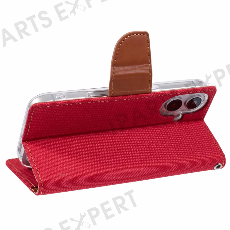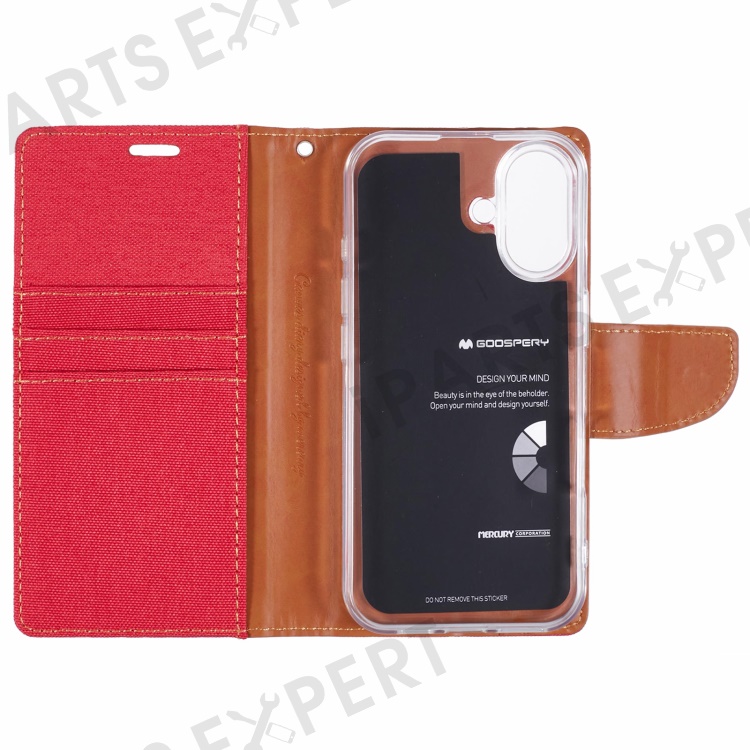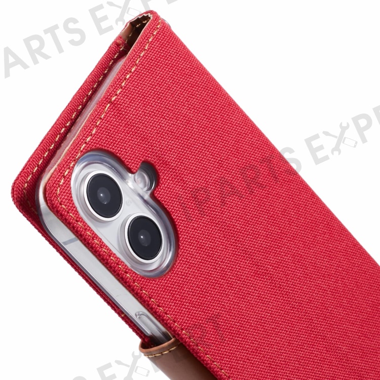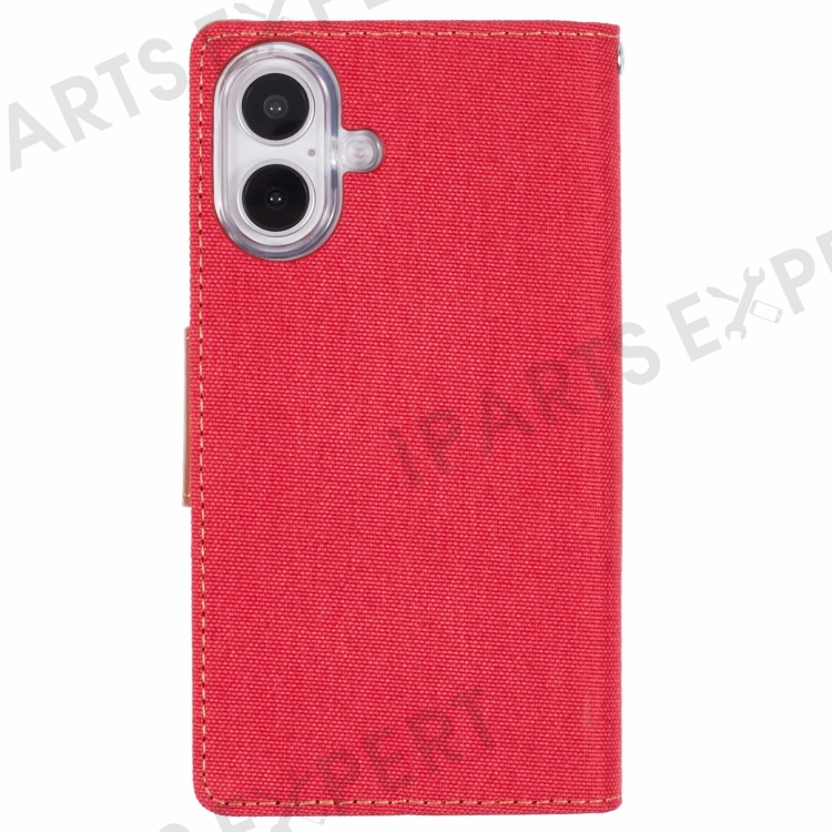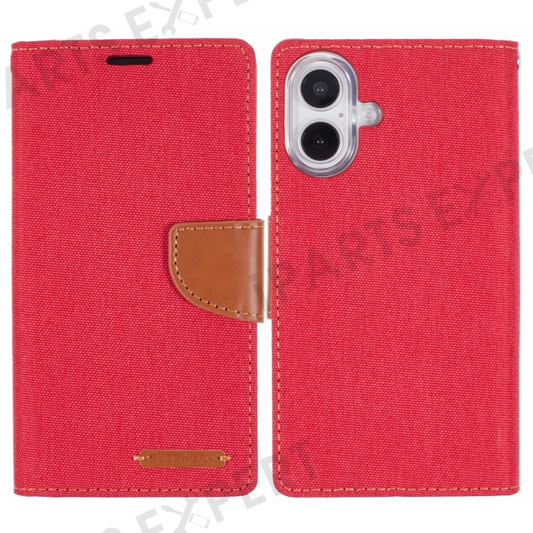MERCURY GOOSPERY For iPhone 16 Plus Case Canvas Texture Leather Wallet Phone Cover - Red