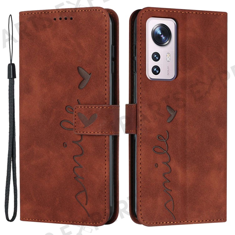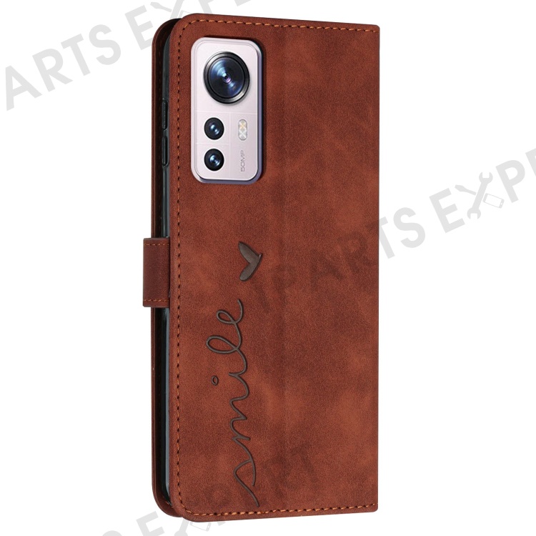 Mobile Phone Case Wallet for Xiaomi 12 Lite 5G, Imprinting Heart Shape Skin-touch Feeling PU Leather Stand Scratch-resistant Flip Phone Cover - Brown