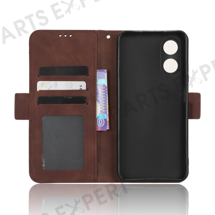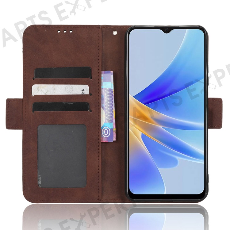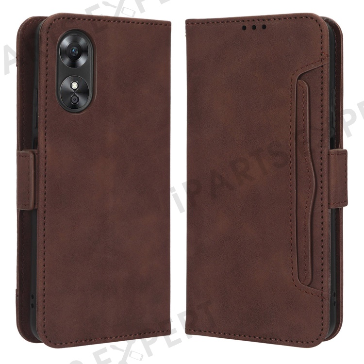 Multiple Card Slots Phone Case for Oppo A17 4G, PU Leather + TPU Wallet Stand Protective Cover - Brown