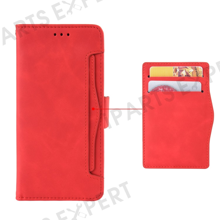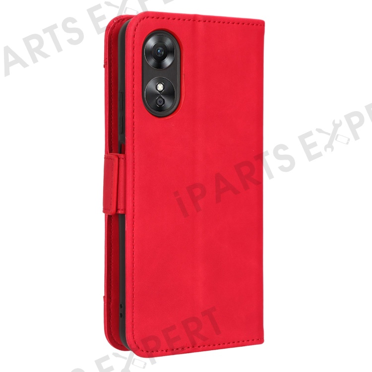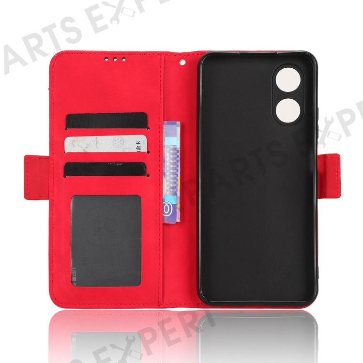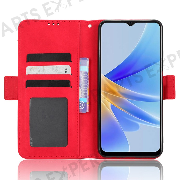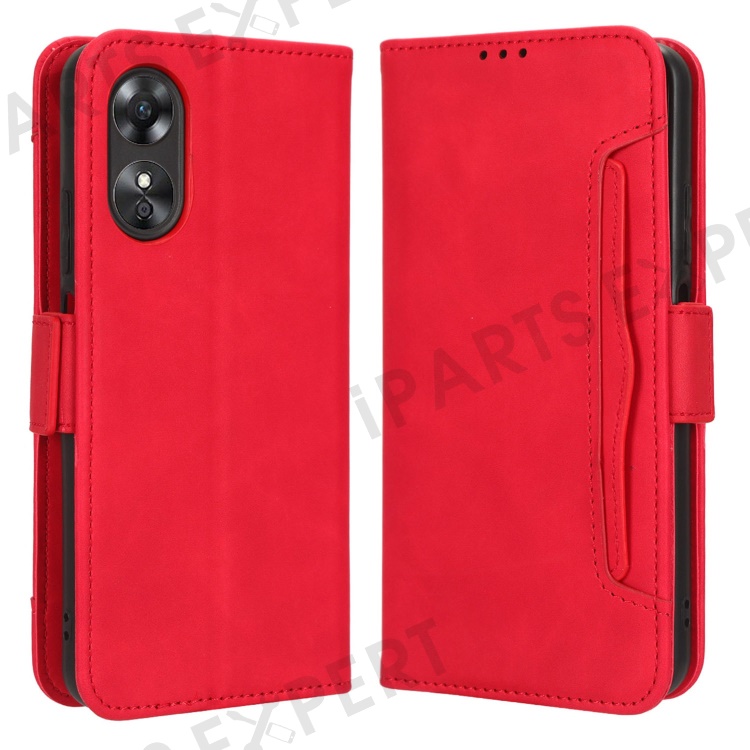 Multiple Card Slots Phone Case for Oppo A17 4G, PU Leather + TPU Wallet Stand Protective Cover - Red