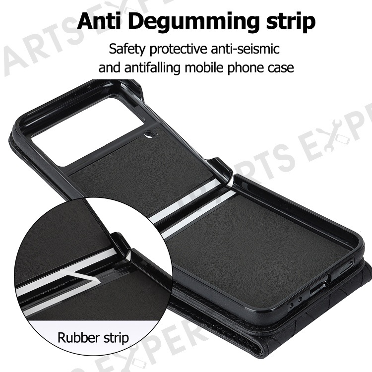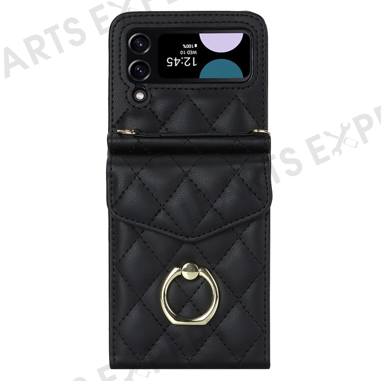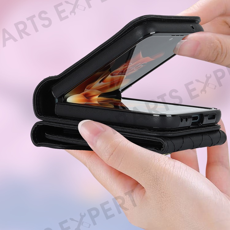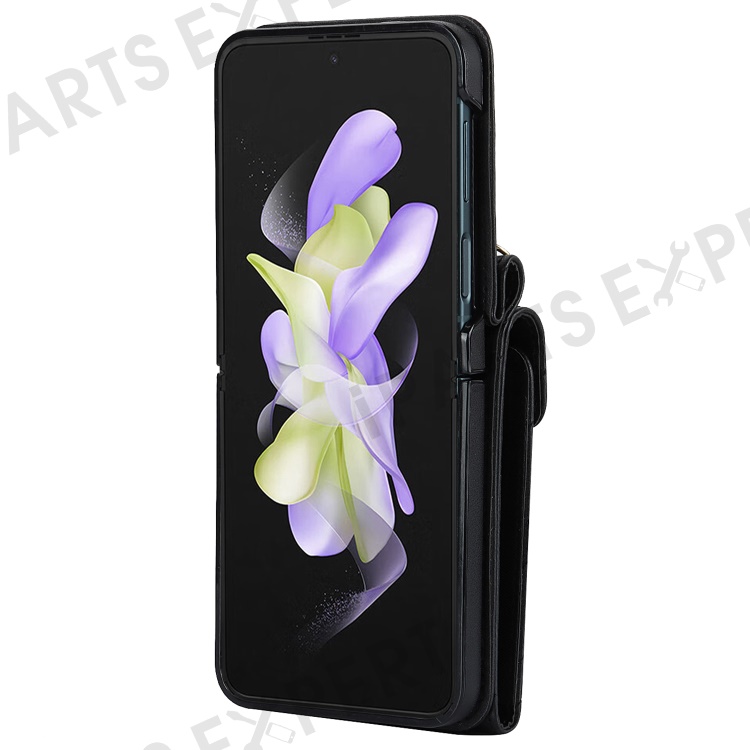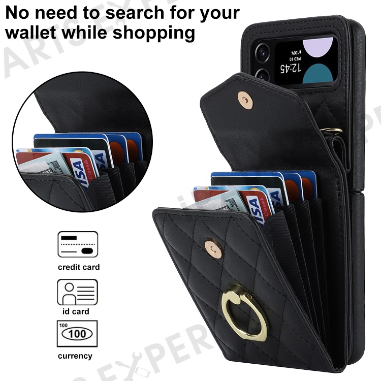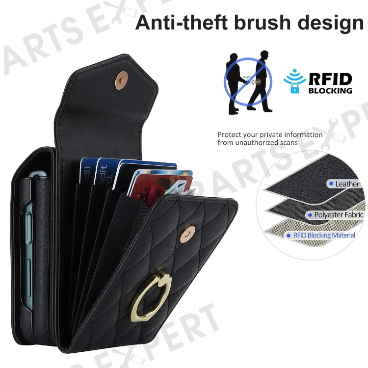 Multiple Card Slots Phone Case for Samsung Galaxy Z Flip3 5G, RFID Blocking Ring Kickstand Leather+PC Cover - Black