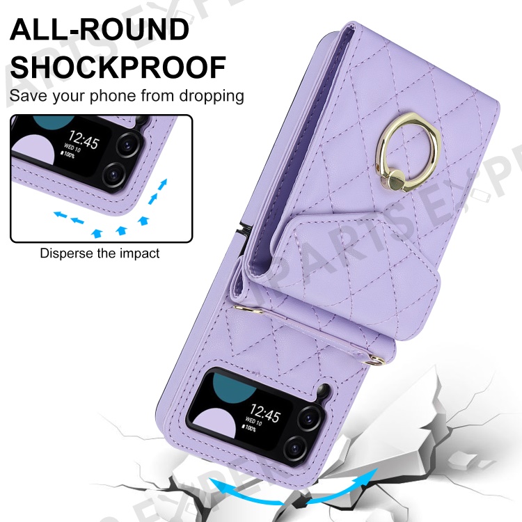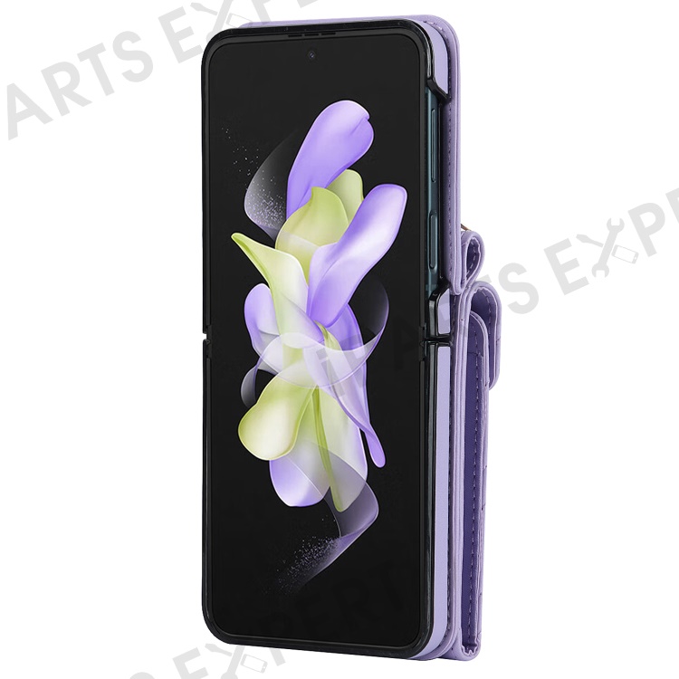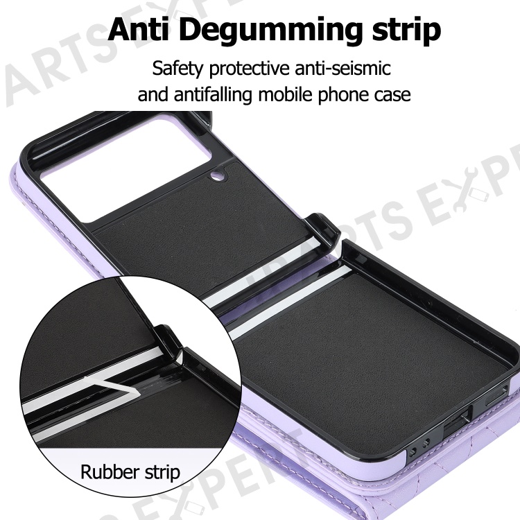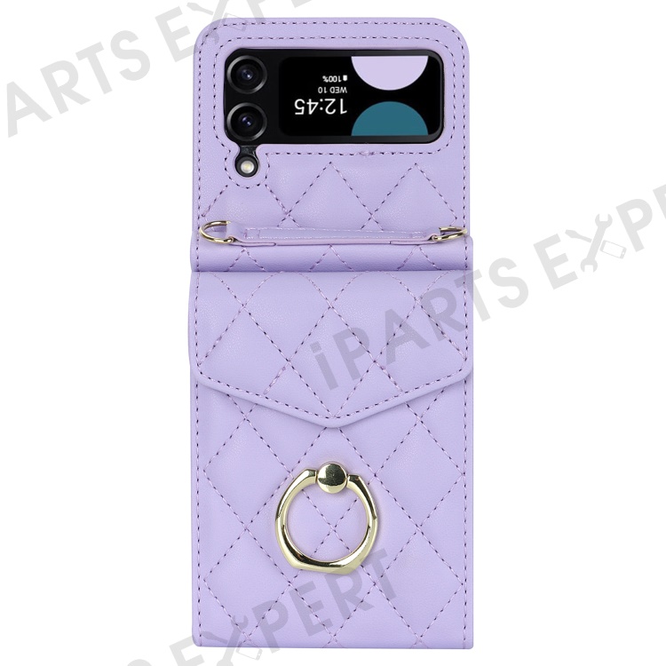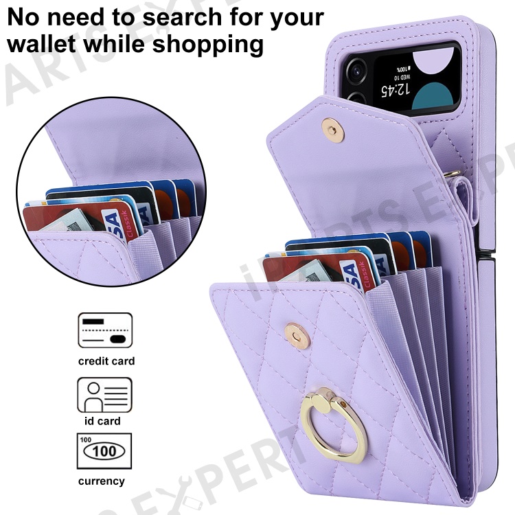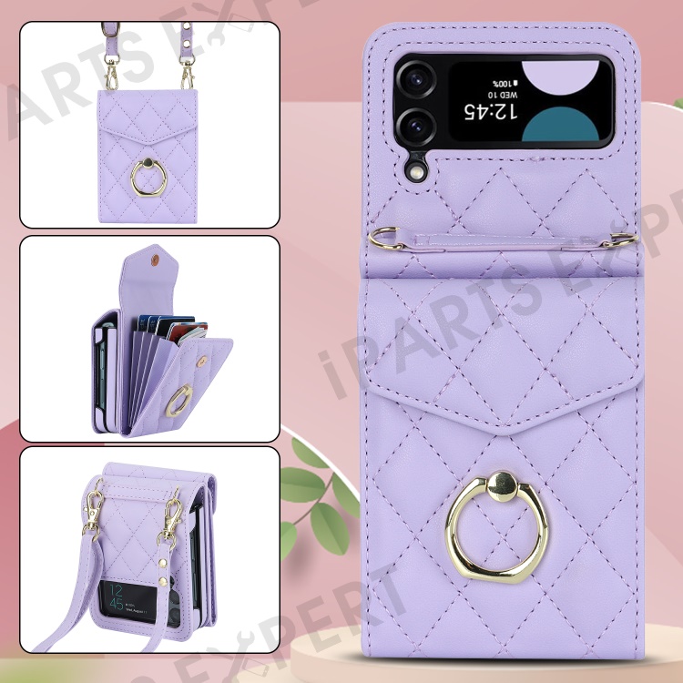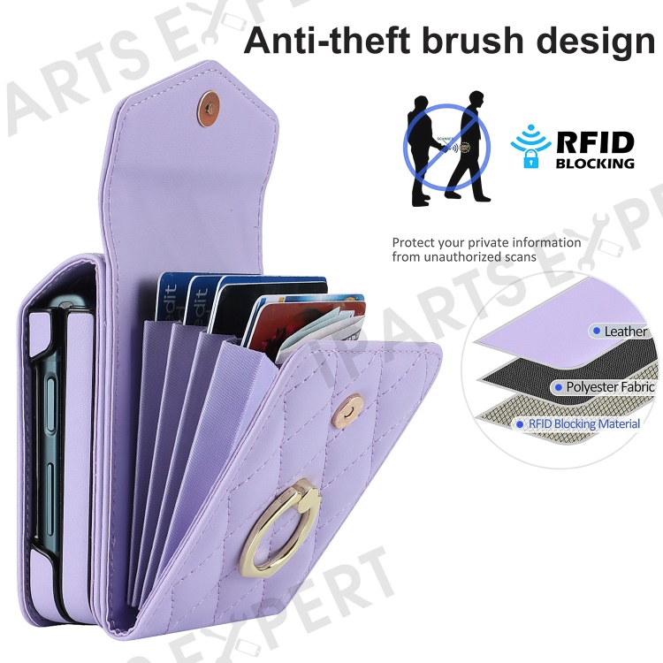 Multiple Card Slots Phone Case for Samsung Galaxy Z Flip3 5G, RFID Blocking Ring Kickstand Leather+PC Cover - Light Purple