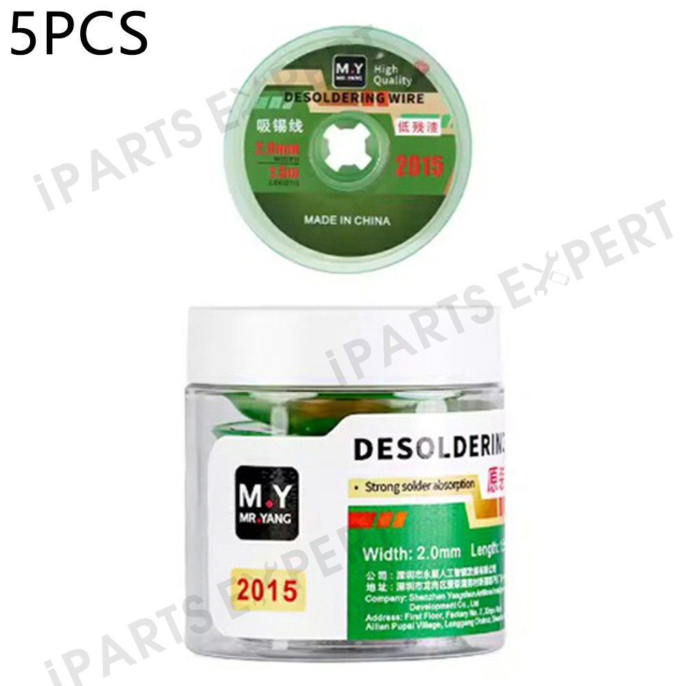 MY 5Pcs / Bottle 2MM Desoldering Wire High Purity Copper Braid Low Residue Powerful Tin Absorbent Tape - 2015 1.5M