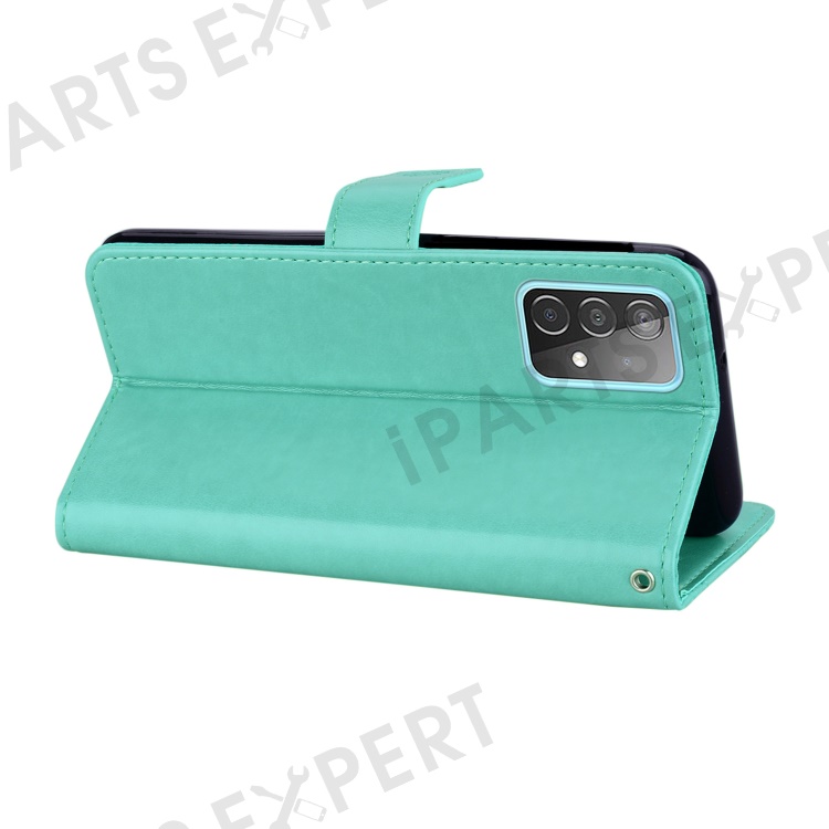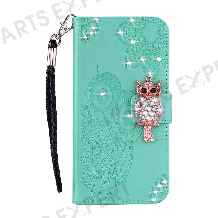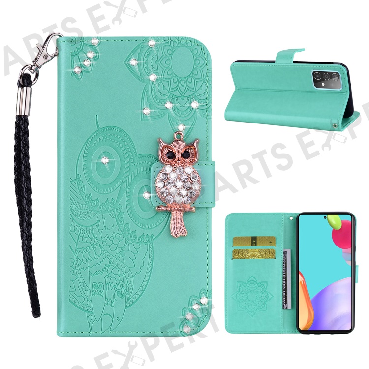 Owl Imprint Rhinestone Decor Wallet Leather Cover for Samsung Galaxy A52 4G/5G / A52s 5G Stand Shell - Cyan