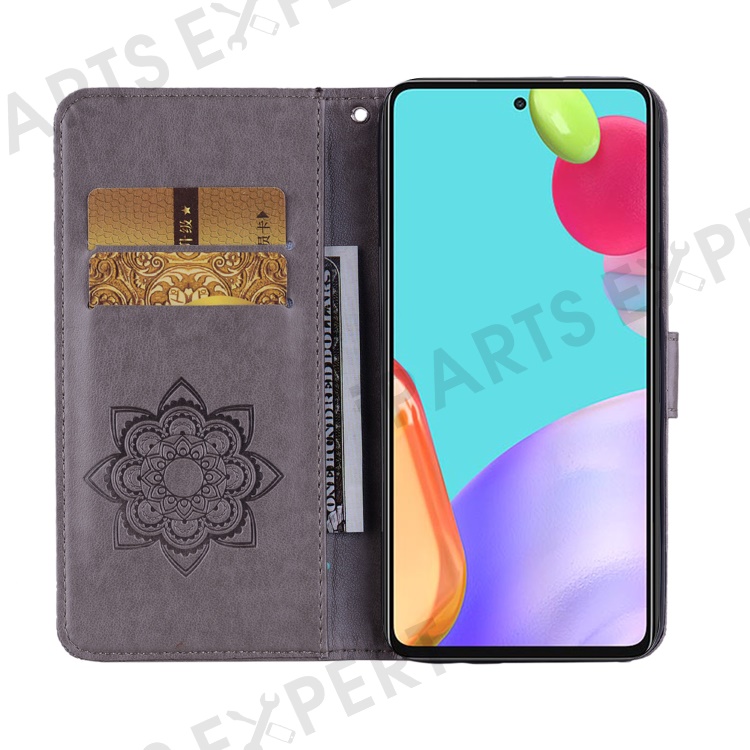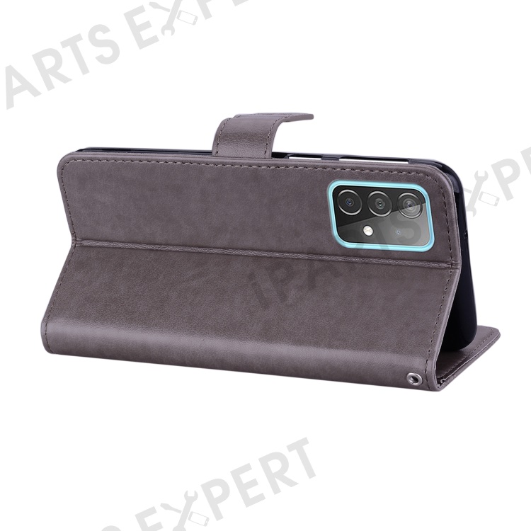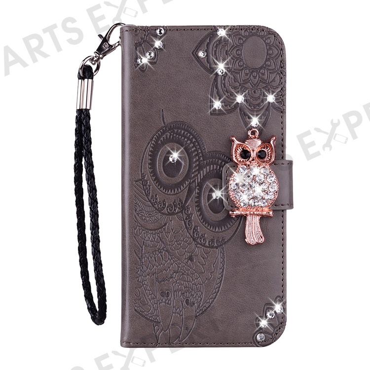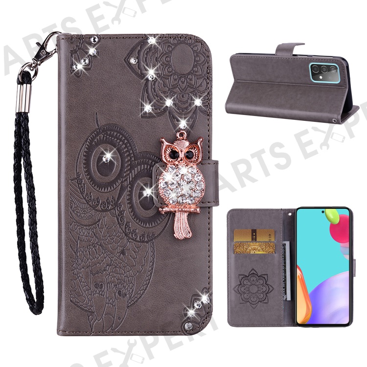 Owl Imprint Rhinestone Decor Wallet Leather Cover for Samsung Galaxy A52 4G/5G / A52s 5G Stand Shell - Grey
