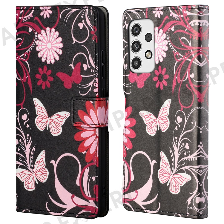Pattern Printing Leather Case for Samsung Galaxy A23 5G, Wallet Stand Magnetic Clasp Phone Cover - Butterflies and Flowers