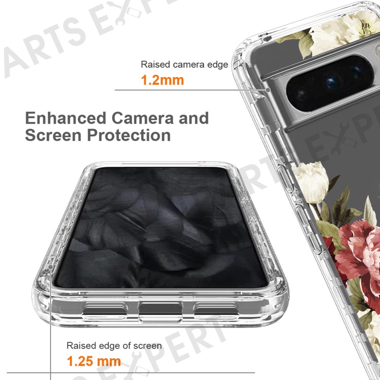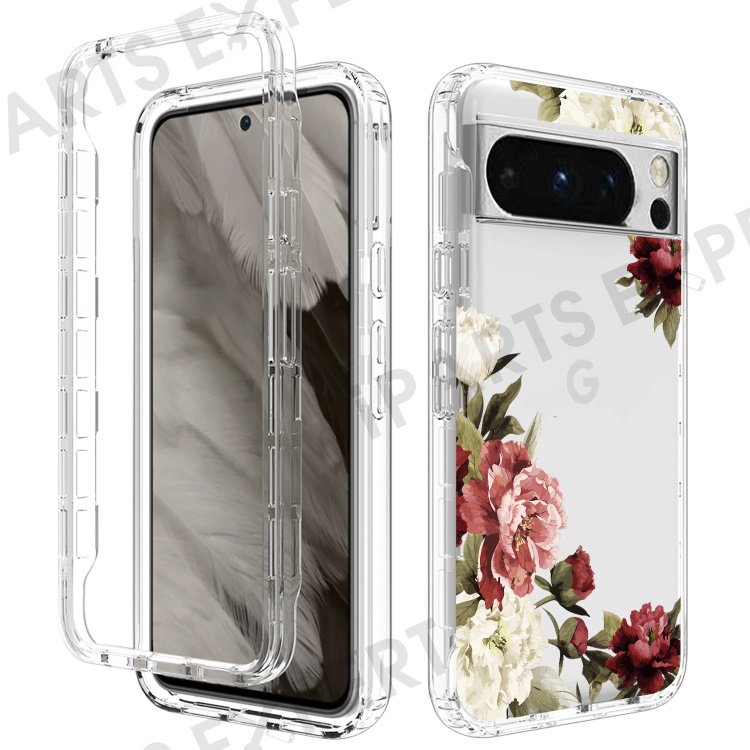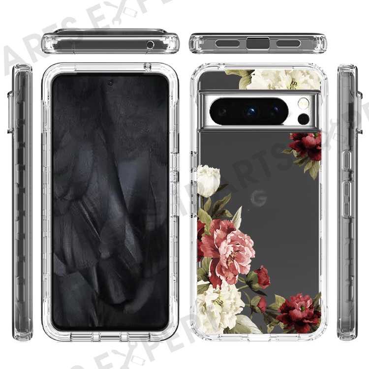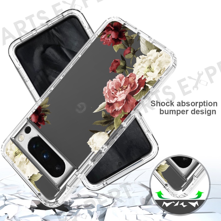 Pattern Printing Phone Case for Google Pixel 8 Pro , PC Frame + TPU Anti-drop Clear Phone Cover - Trumpet Flower