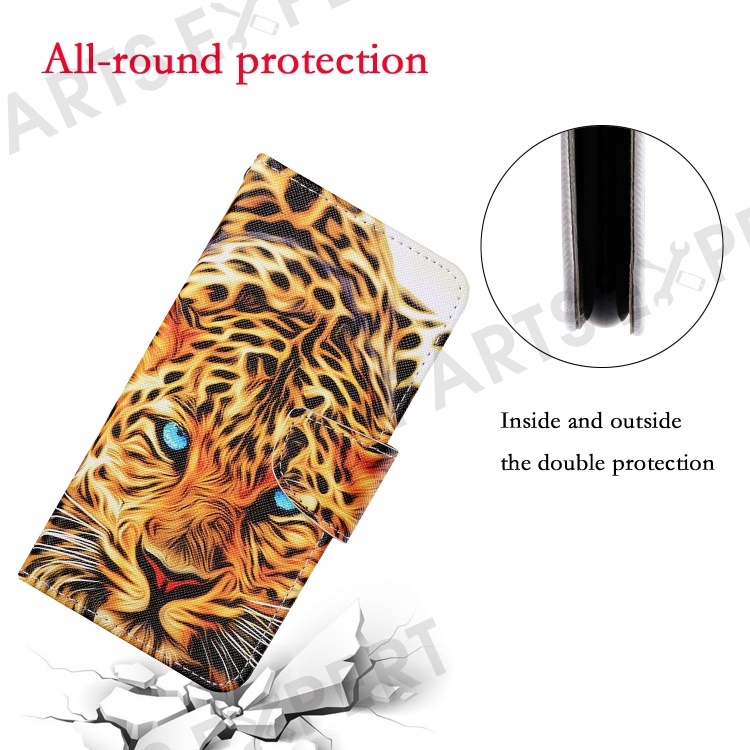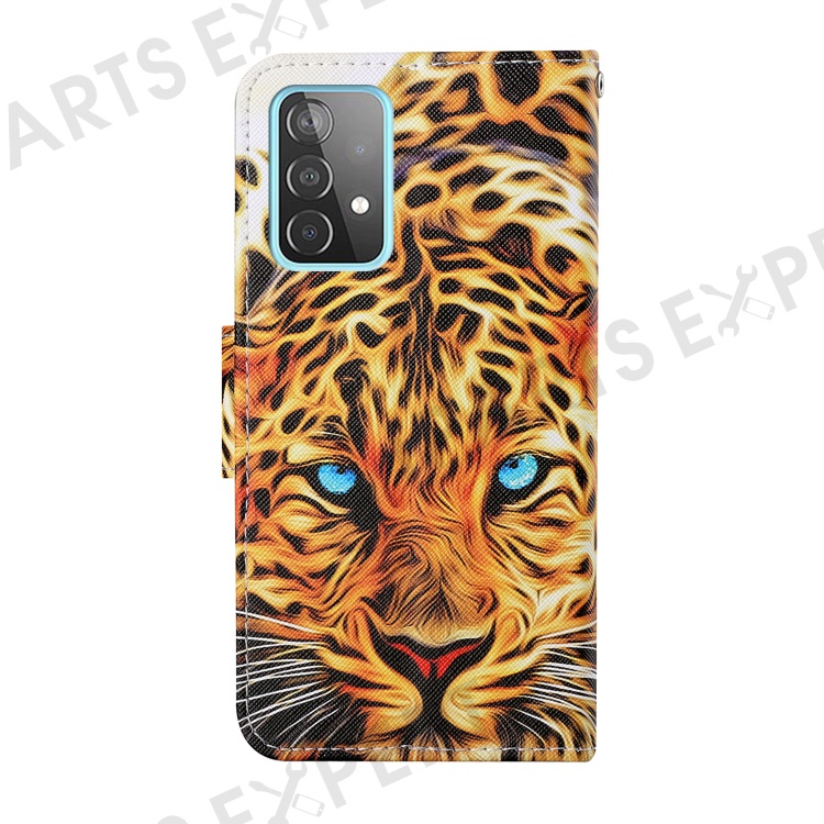 Pattern Printing Wallet Stand PU Leather Phone Cover Shell with Lanyard for Samsung Galaxy A52 4G/5G / A52s 5G - Leopard