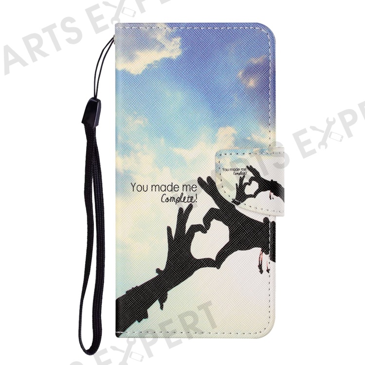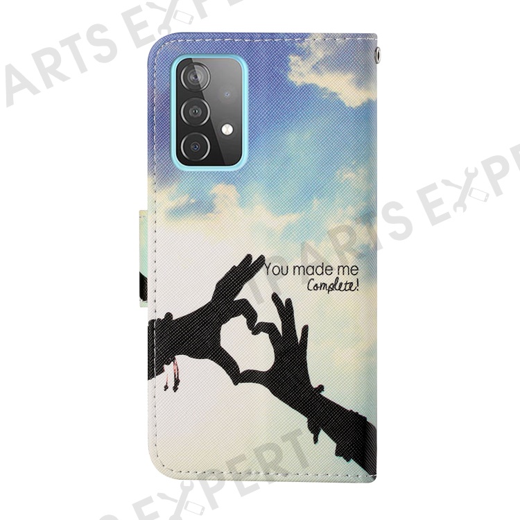 Pattern Printing Wallet Stand PU Leather Phone Cover Shell with Lanyard for Samsung Galaxy A52 4G/5G / A52s 5G - Love Heart Gesture