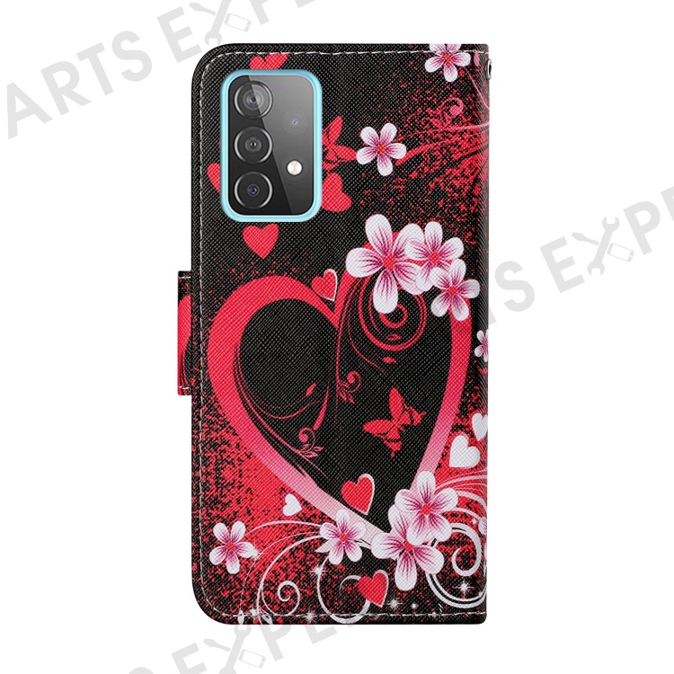 Pattern Printing Wallet Stand PU Leather Phone Cover Shell with Lanyard for Samsung Galaxy A52 4G/5G / A52s 5G - Love Heart