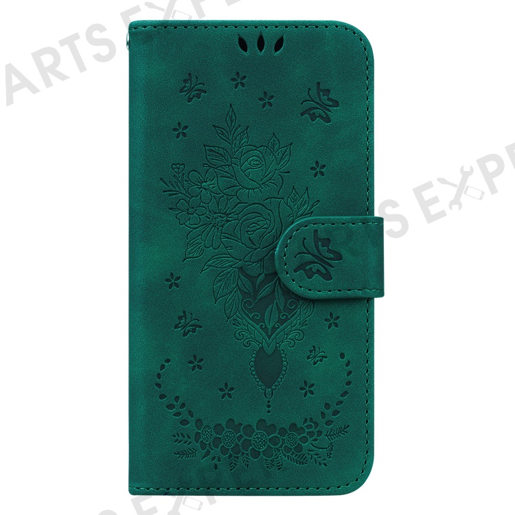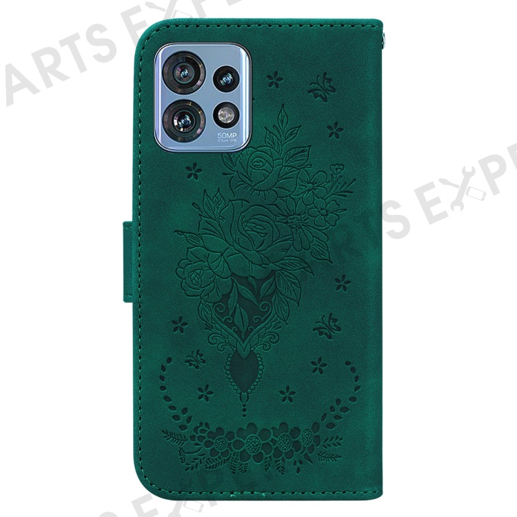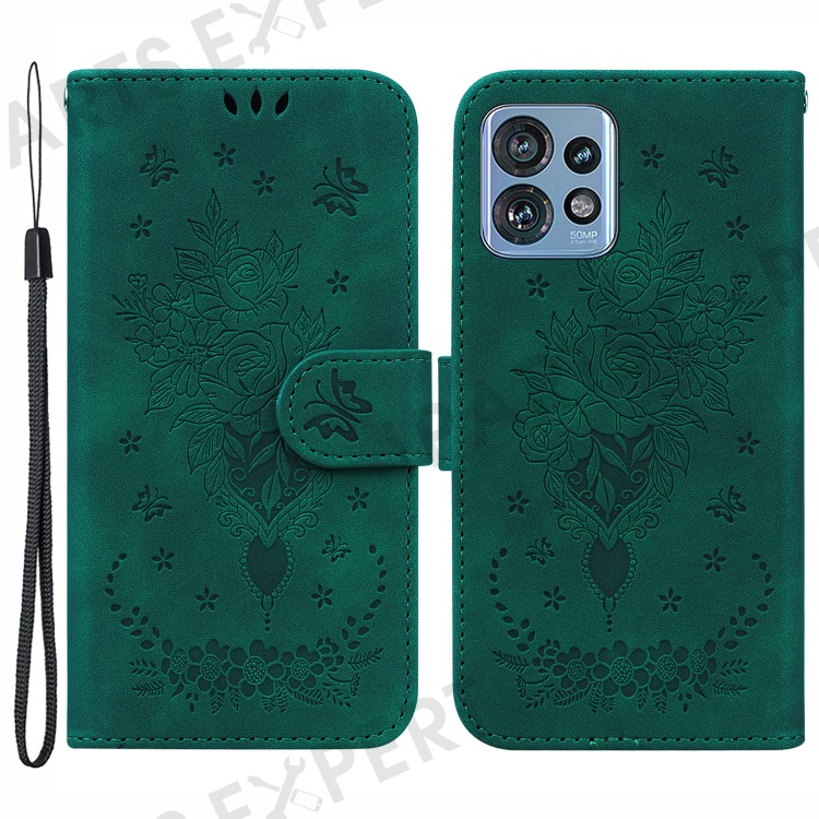 Phone Case for Motorola Edge 40 Pro 5G / Moto X40 5G / Edge+ (2023) , PU Leather Rose Butterfly Imprinted Stand Wallet Cover - Green