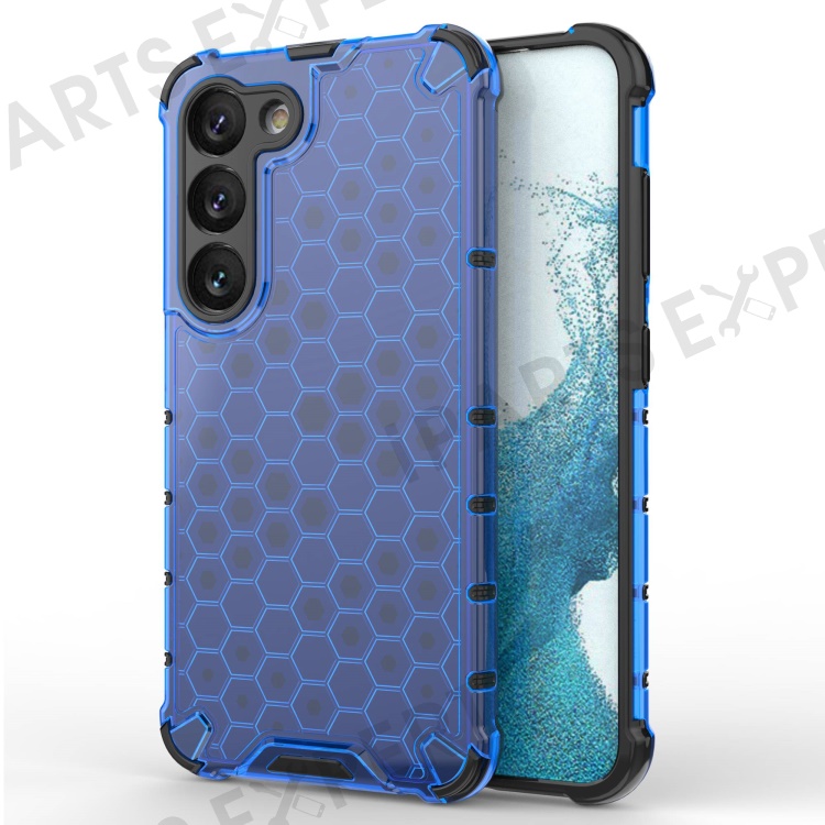 Phone Case for Samsung Galaxy S23 Shockproof Case Honeycomb Textured TPU + PC Phone Cover - Blue