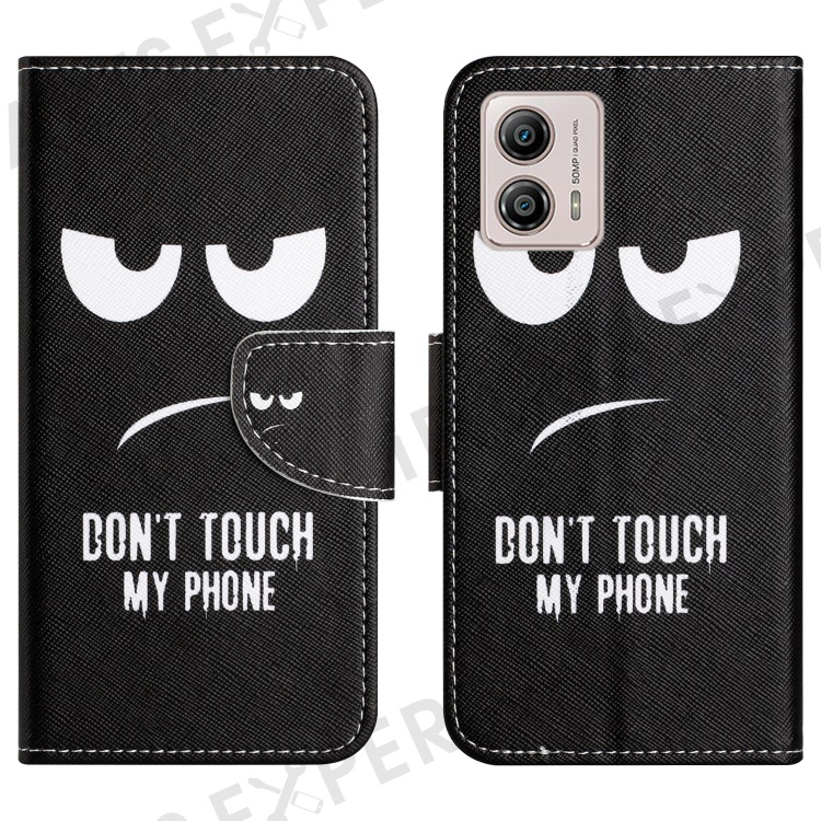 Phone Leather Case for Motorola Moto G53 5G / G13 4G / G23 4G, Pattern Printing Cross Texture Stand Wallet Phone Cover - Don't Touch My Phone