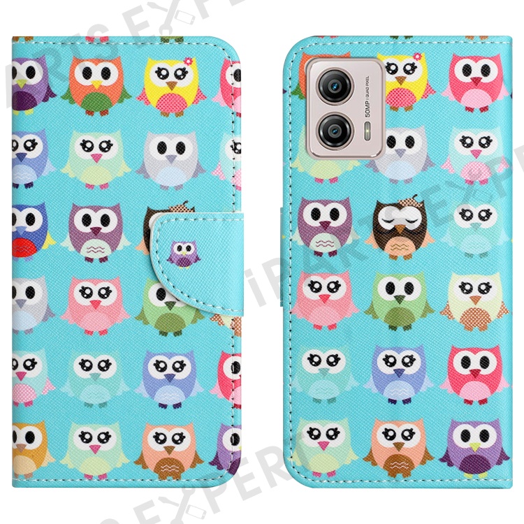 Phone Leather Case for Motorola Moto G53 5G / G13 4G / G23 4G, Pattern Printing Cross Texture Stand Wallet Phone Cover - Owls