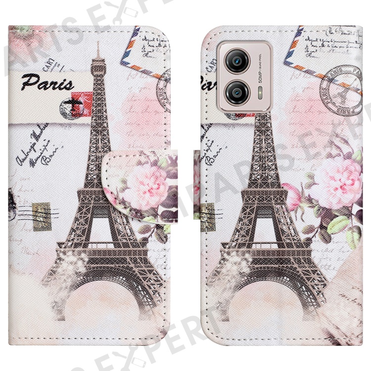 Phone Leather Case for Motorola Moto G53 5G / G13 4G / G23 4G, Pattern Printing Cross Texture Stand Wallet Phone Cover - Tower
