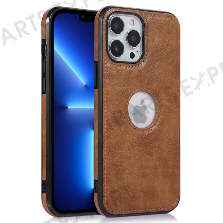 Protective Case for iPhone 13 Pro 6.1 inch Logo View Phone Case Soft TPU+PU Phone Slim Cover - Brown