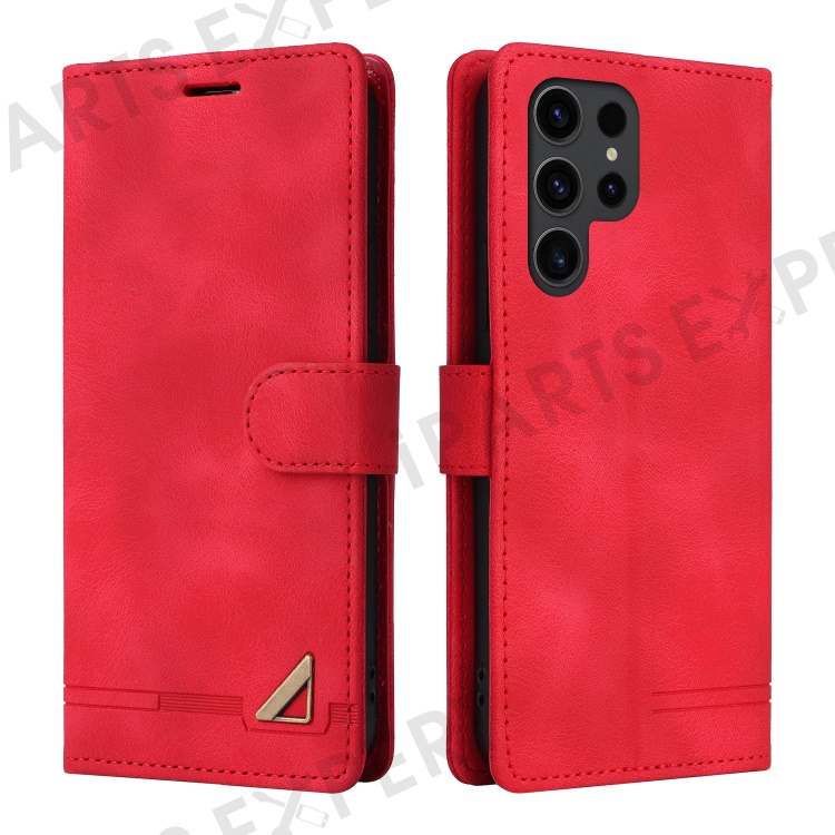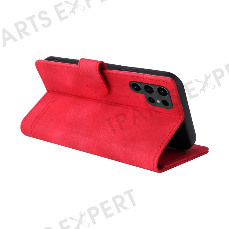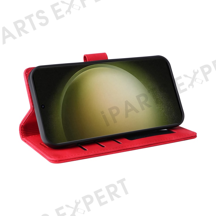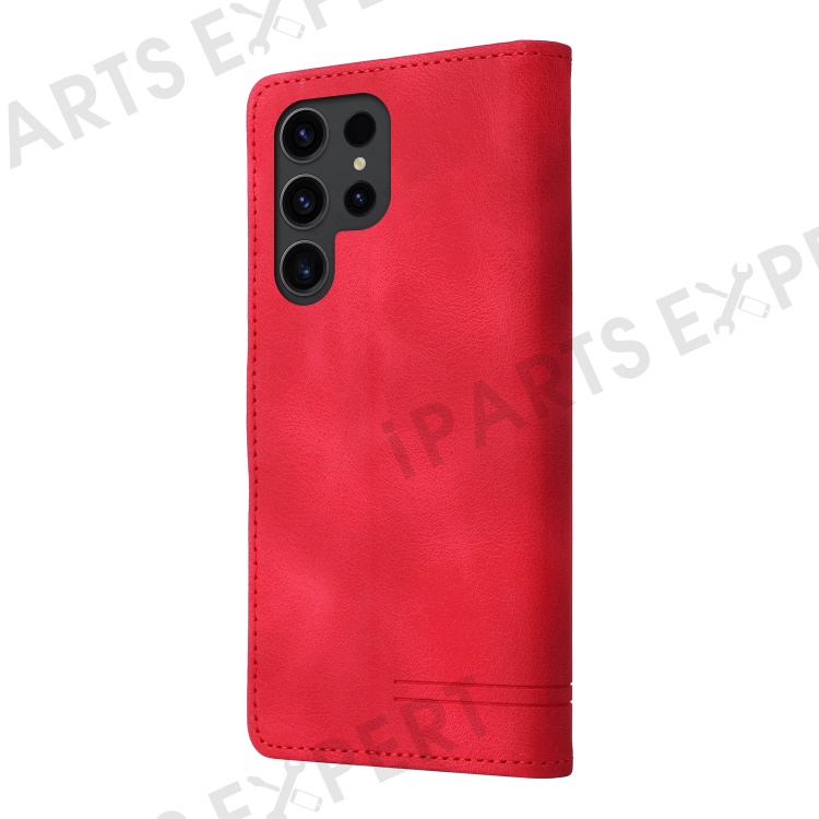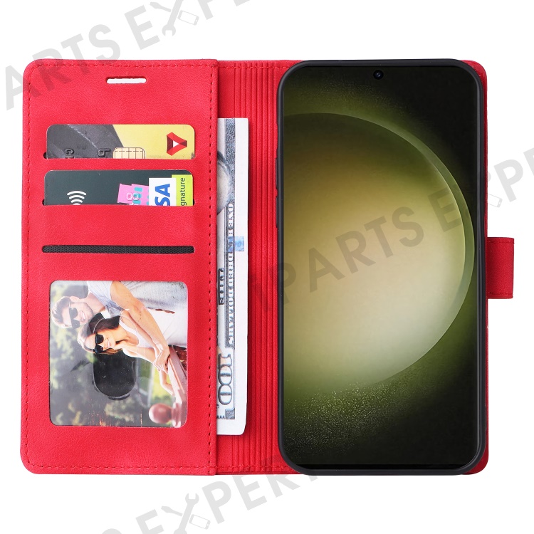 Protective Case for Samsung Galaxy S23 Ultra PU Leather Wallet Case 007 Series Skin-Touch Phone Cover - Red