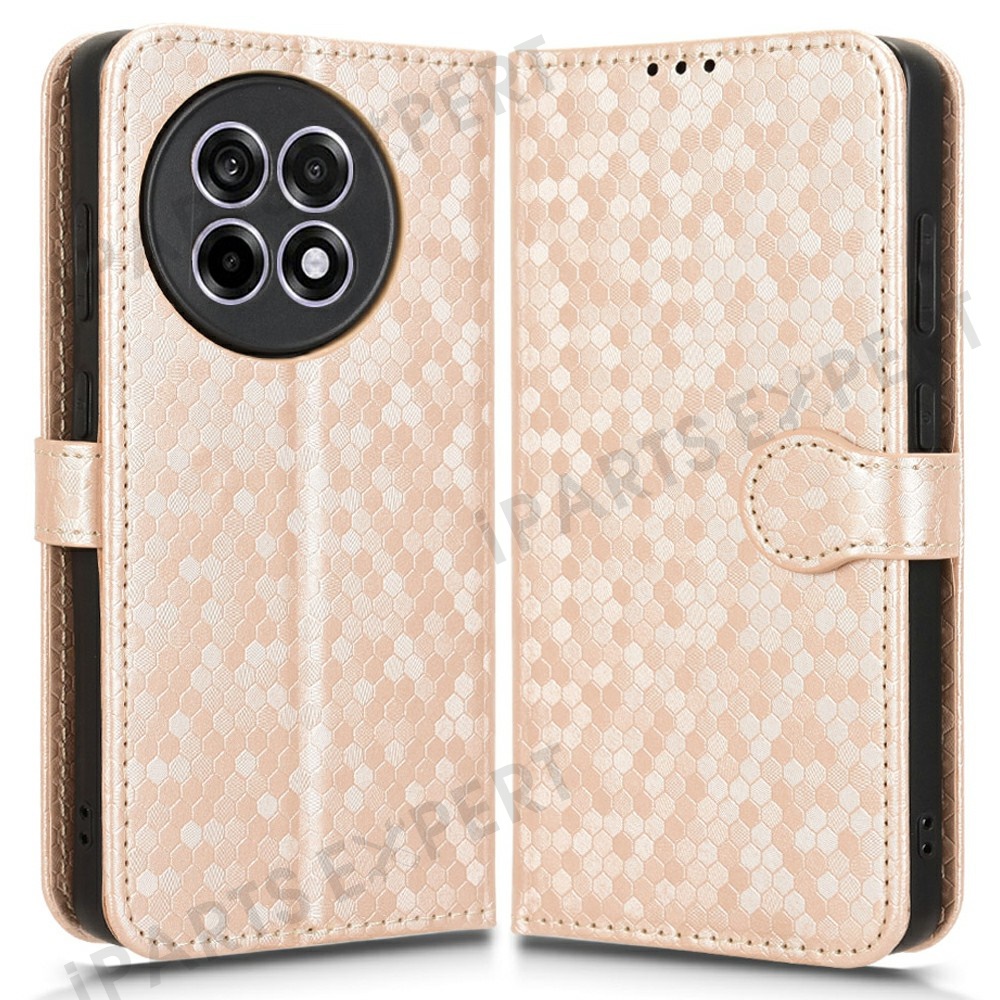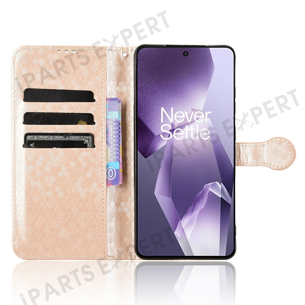 PU Leather Case For OnePlus 13R 5G / Ace 5 5G / Ace 5 Pro 5G Wallet Dot Pattern Imprint Phone Cover - Rose Gold