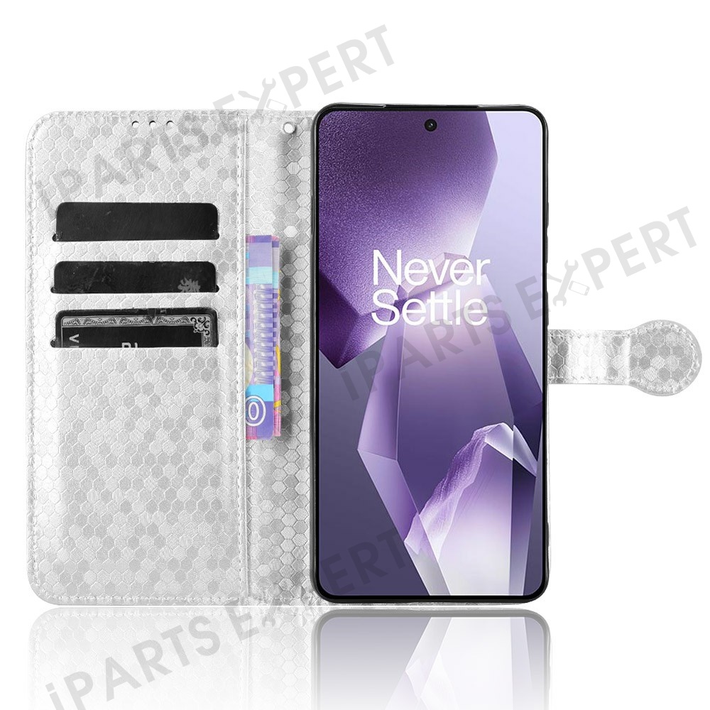 PU Leather Case For OnePlus 13R 5G / Ace 5 5G / Ace 5 Pro 5G Wallet Dot Pattern Imprint Phone Cover - Silver