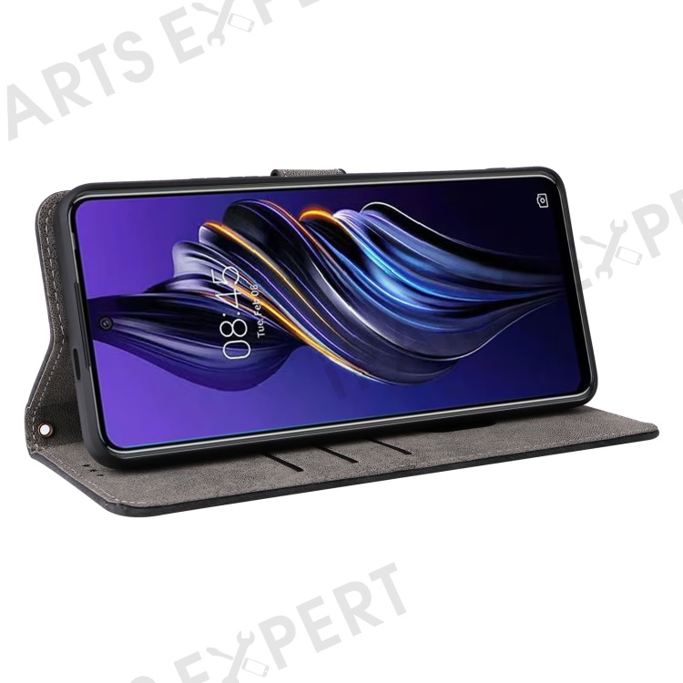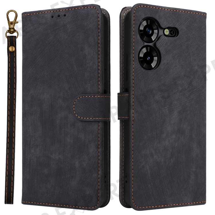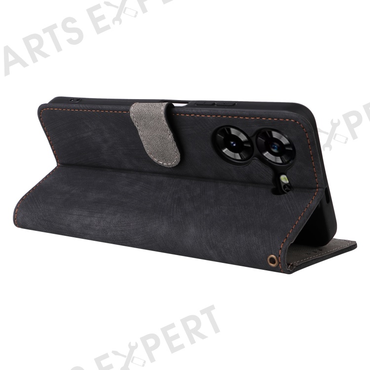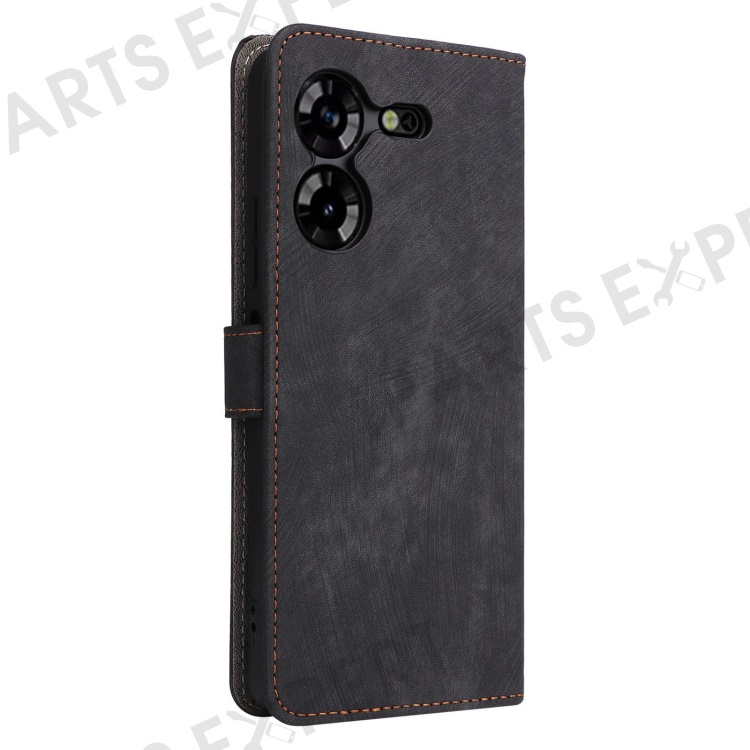 PU Leather Case for TECNO Pova 5 4G LH7N , Stand Shell RFID Blocking Wallet Phone Cover with Strap - Black