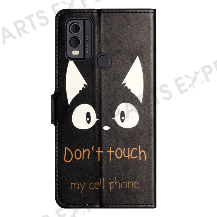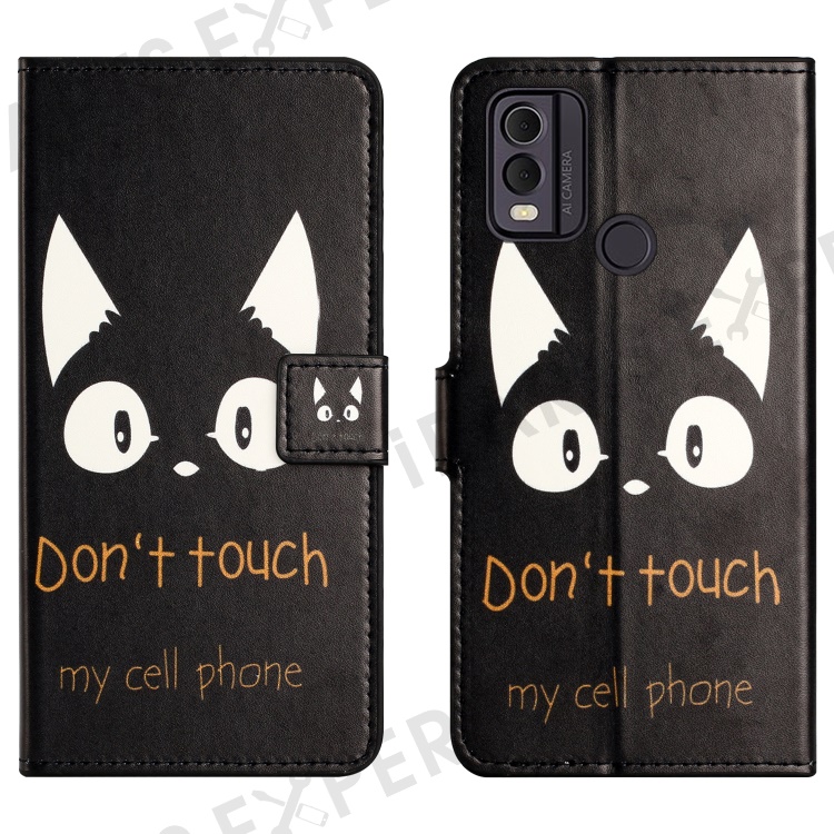 PU Leather Phone Case for Nokia C32 / C22 , Pattern Printing Wallet Stand Phone Cover - Don't Touch My Cell Phone