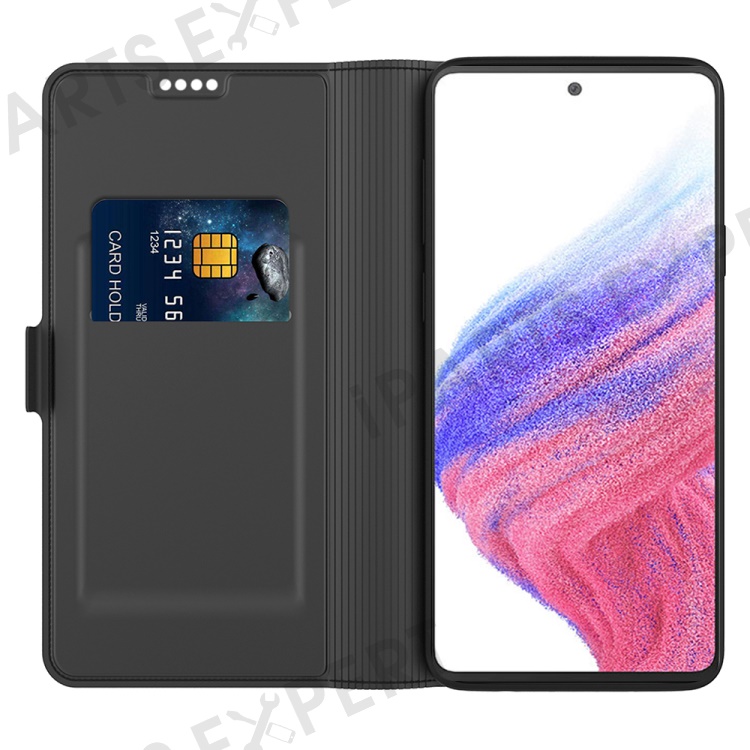 PU Leather Phone Case for Samsung Galaxy S24 Ultra Card Slot Phone Cover Stand Shell - Black
