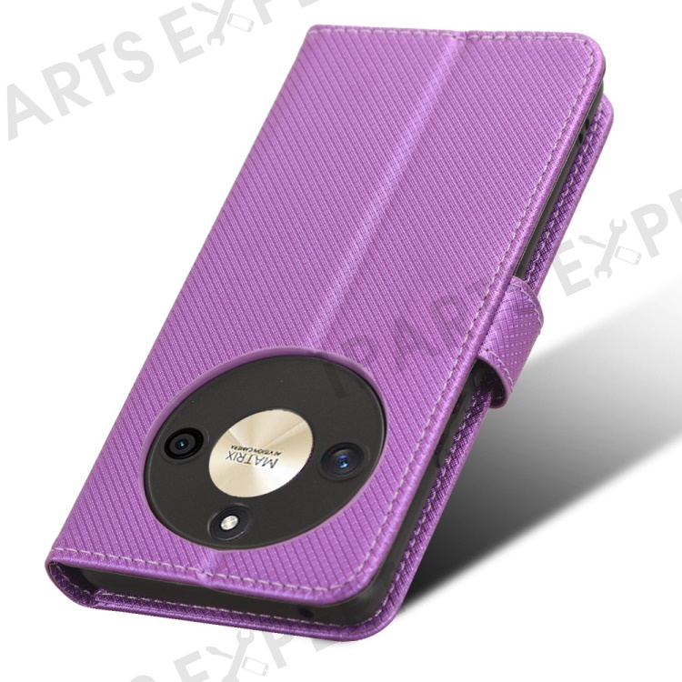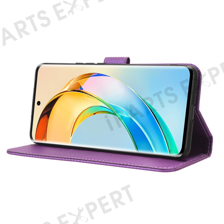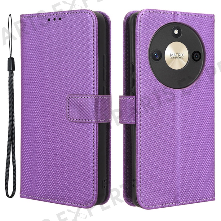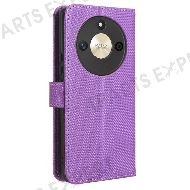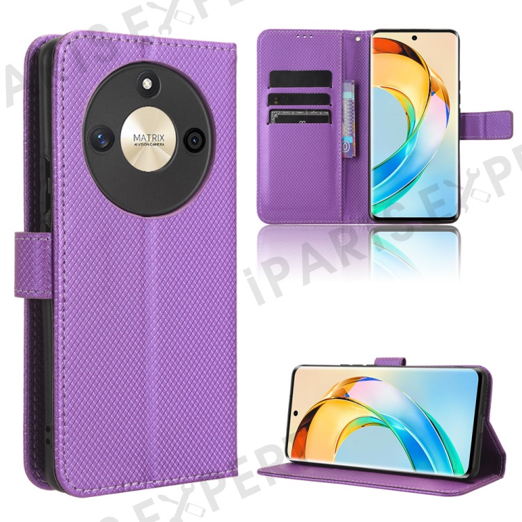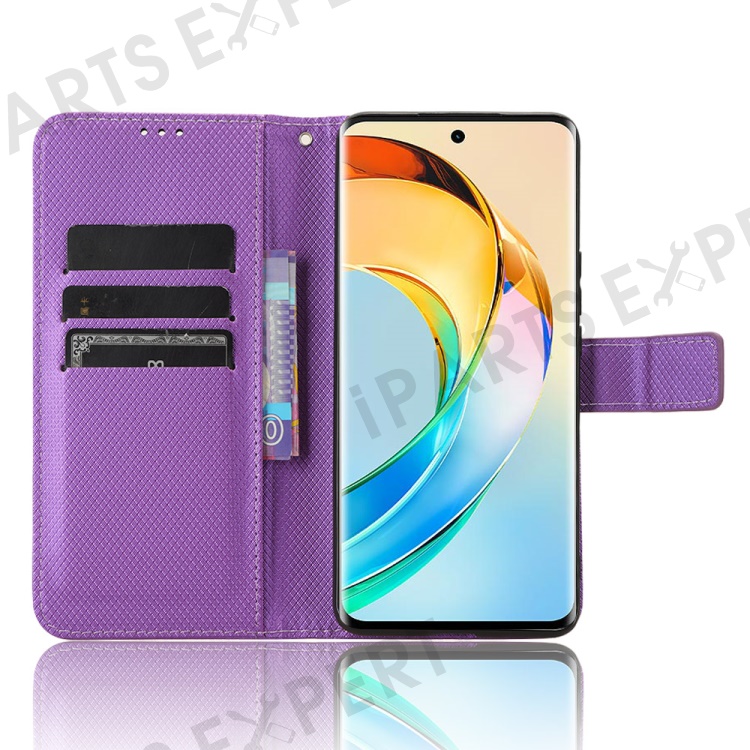 PU Leather Stand Phone Case For Honor X50 , Wallet Shockproof Diamond Texture Phone Cover - Purple
