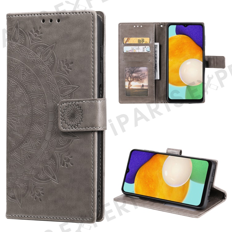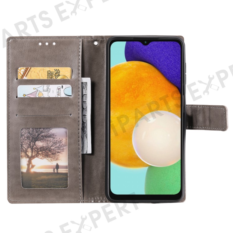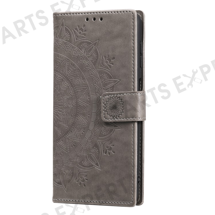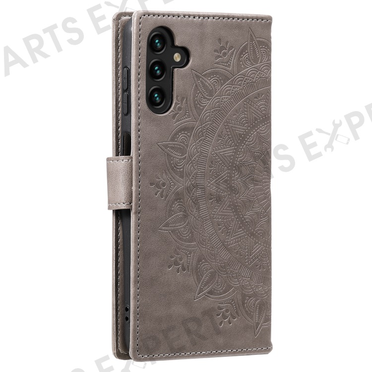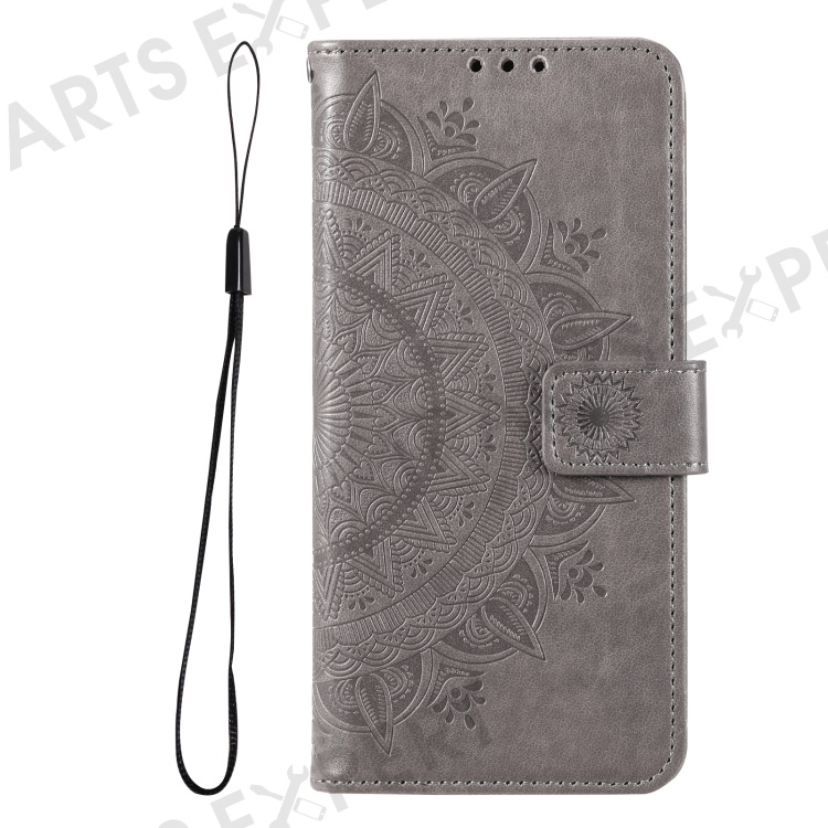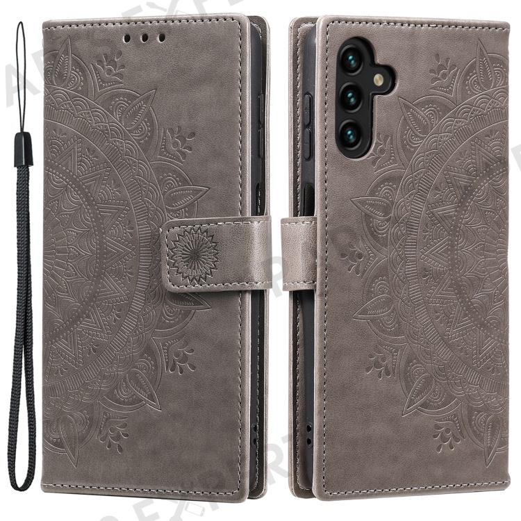 PU Leather Totem Mandala Imprint Wallet Case Stand Cover with Strap for Samsung Galaxy A13 5G / A04s 4G (164.7mm) - Grey