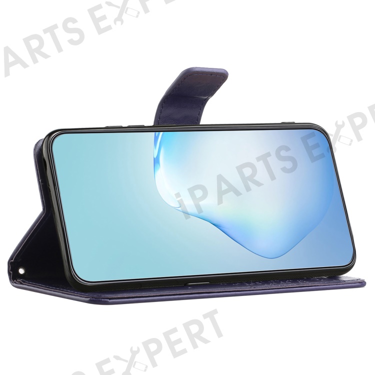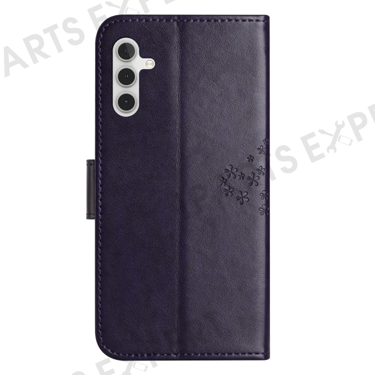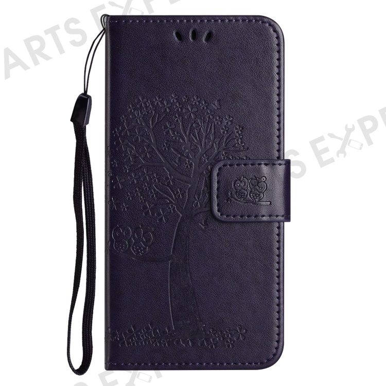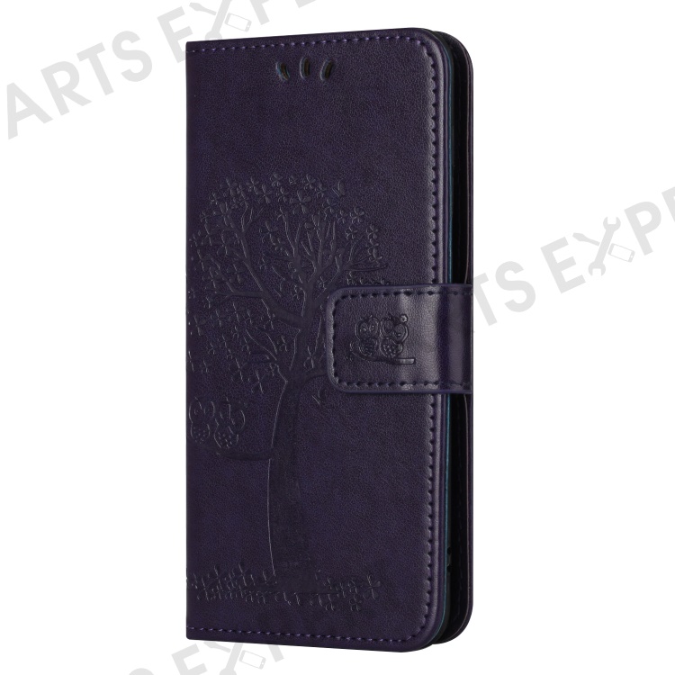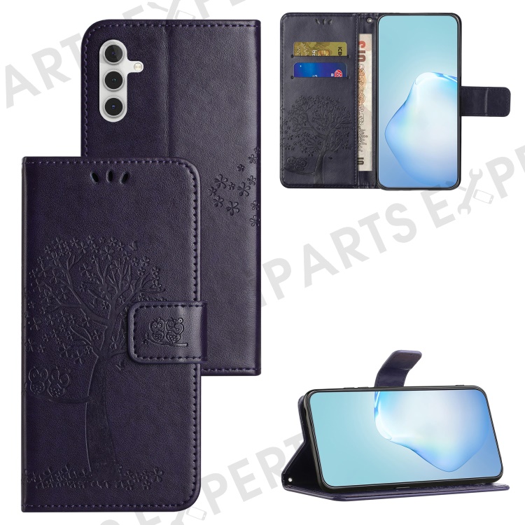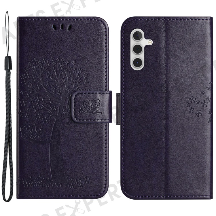 PU For Samsung Galaxy A25 5G (Global) (161.0 x 76.5 x 8.3mm) Owl Tree Imprinted Foldable Stand Phone Cover - Dark Purple
