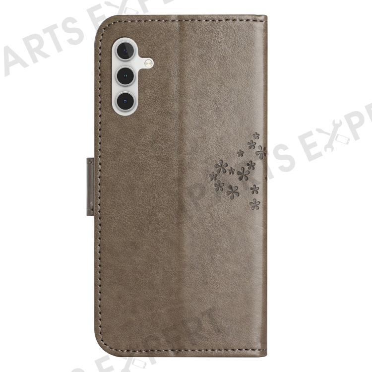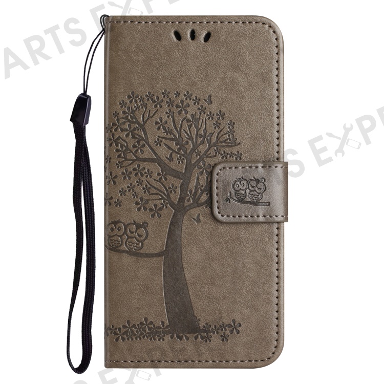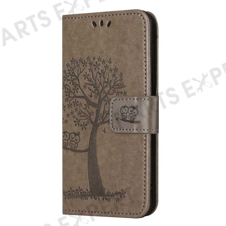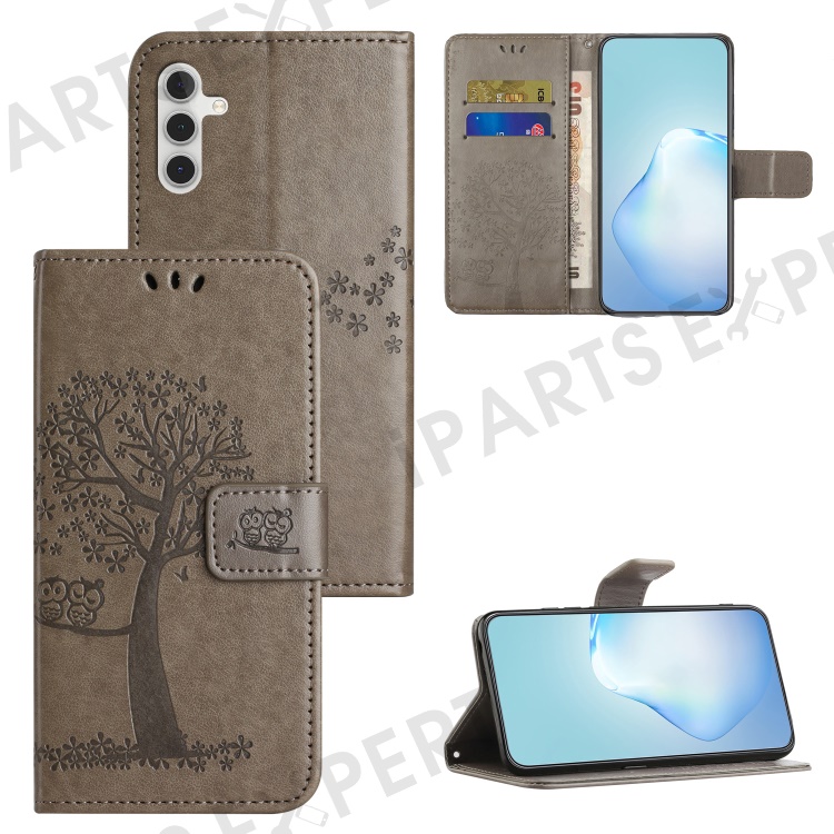PU For Samsung Galaxy A25 5G (Global) (161.0 x 76.5 x 8.3mm) Owl Tree Imprinted Foldable Stand Phone Cover - Grey